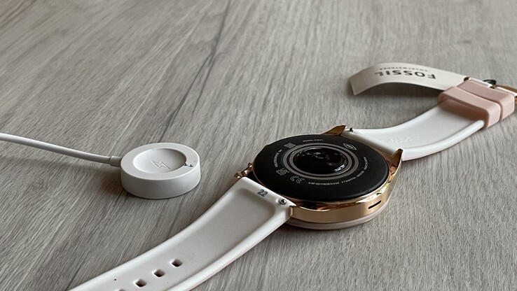 Zum Laden brauchte die Gen 5 LTE im Test 1 Stunde und 5 Minuten. Die Kontaktfläche auf der Unterseite der Uhr hat Fossil in zwei Ringen realisiert. Daher muss man die Uhr nicht ausrichten, wenn man sie auf den Ladeadapter legt.