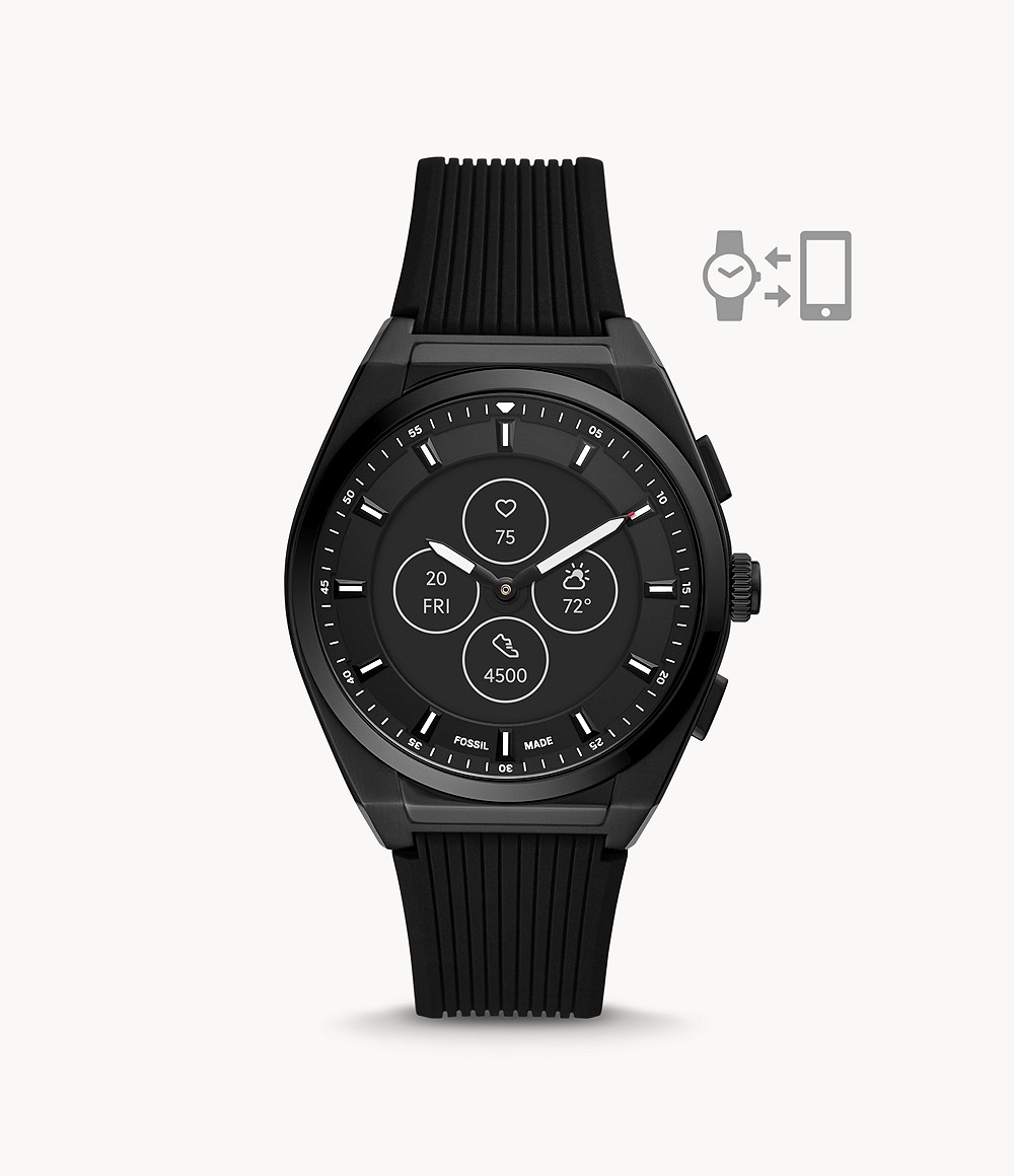 Fossils neue Hybrid-Smartwatch trägt den Namen HR Everett. Sie ergänzt das seit 2019 kontinuierlich ausgebaute Portfolio von Armbanduhren, die sowohl mit einem analogen Ziffernblatt als auch einem darunter liegenden Display ausgestattet sind.