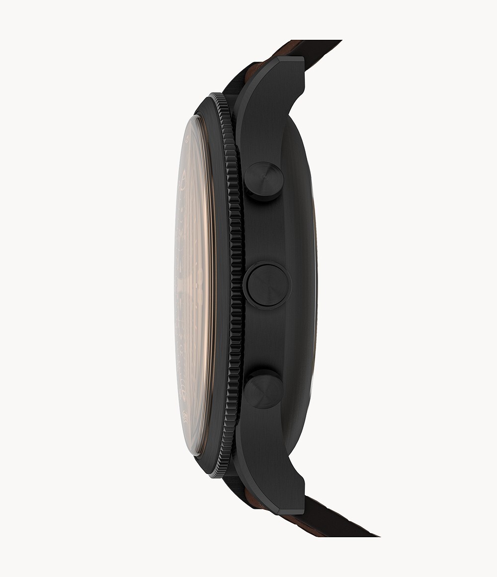 Die neue Fossil Retro-Hybrid-Smartwatch ist mit allen gängigen 22 mm Uhren-Armbändern kompatibel. Die Smartwatch selbst misst 44 mm, das Gehäuse ist bis 5 ATM wasserdicht, wodurch sich die Uhr auch zum Schwimmen eignet.