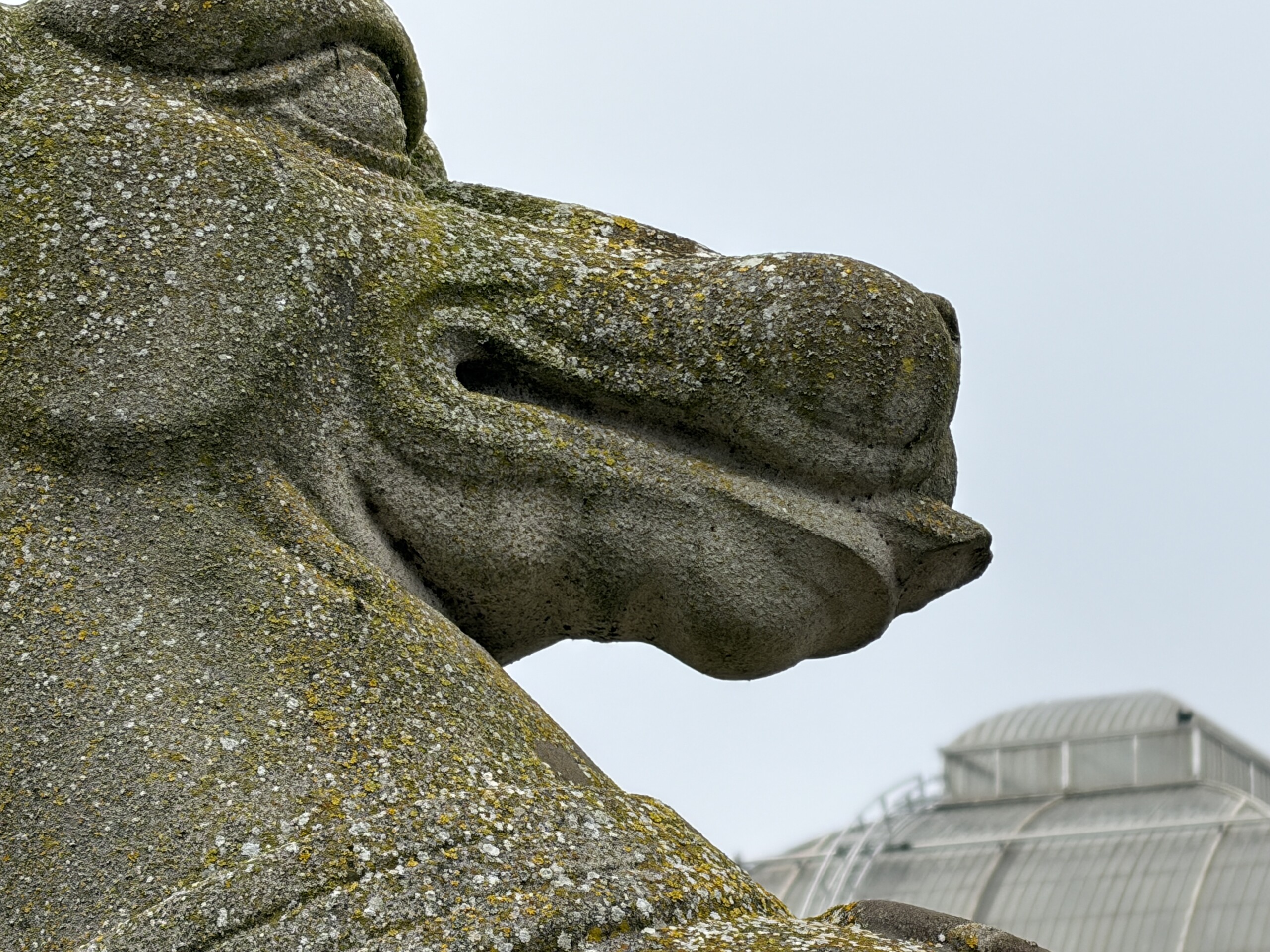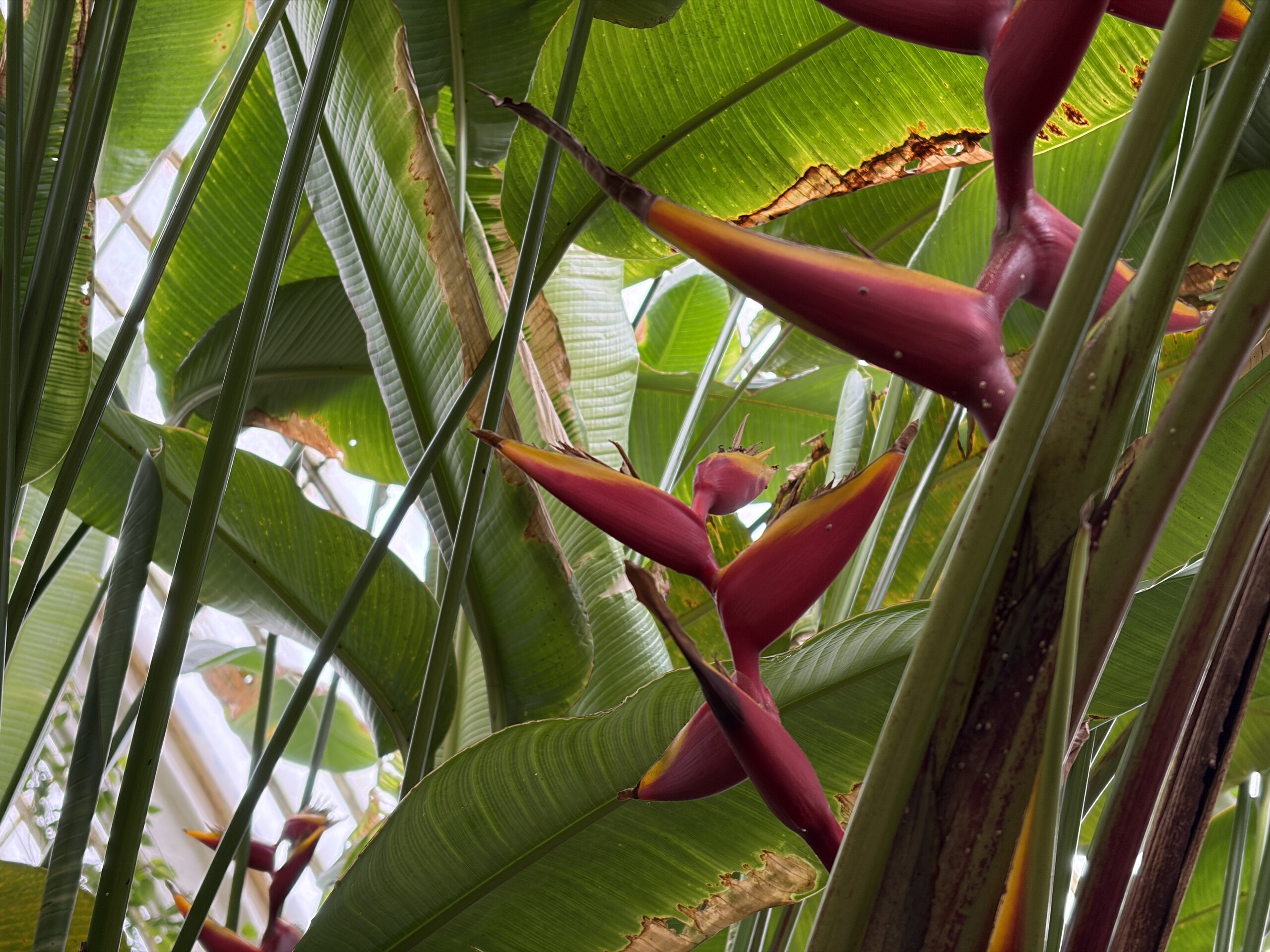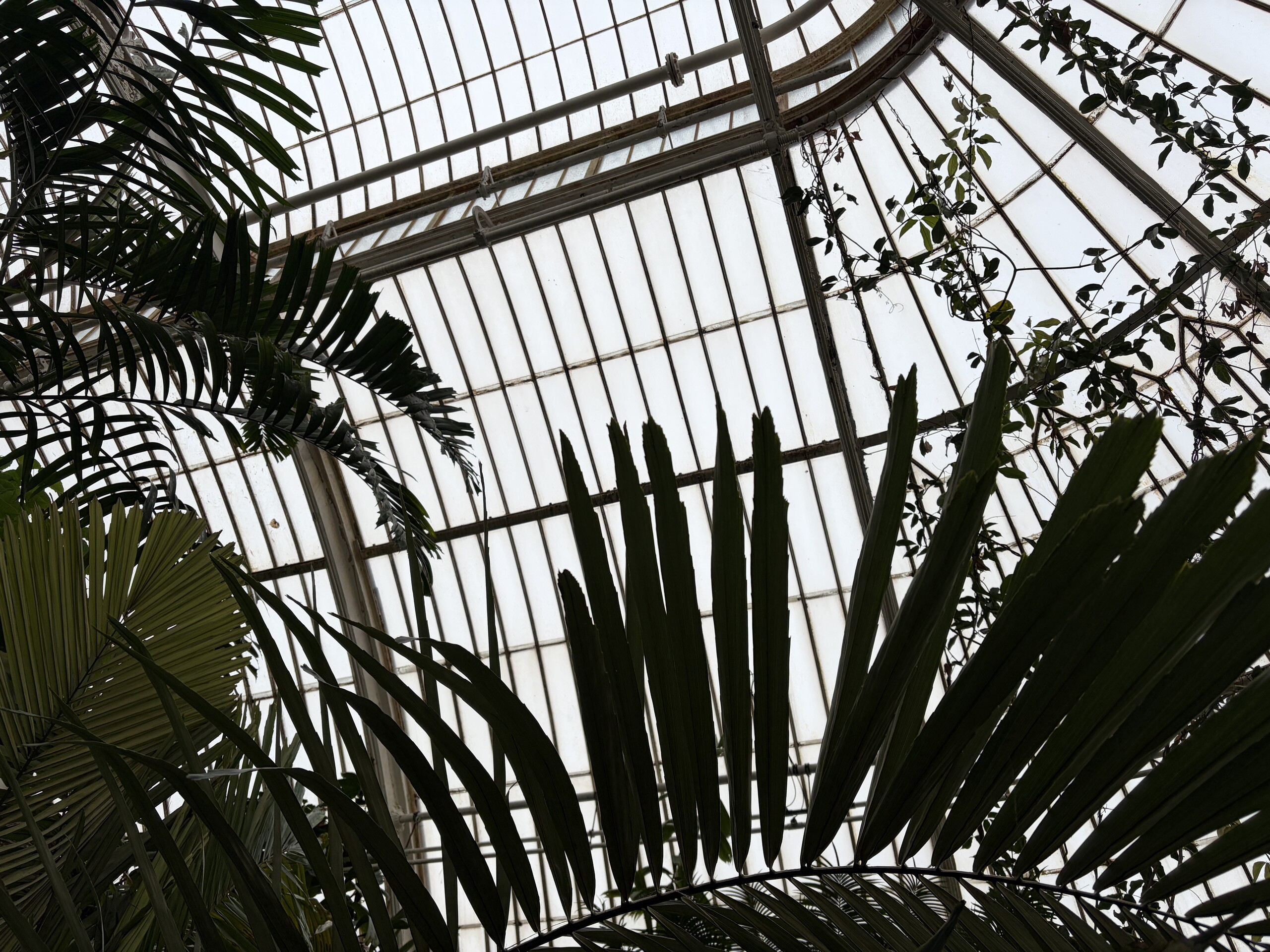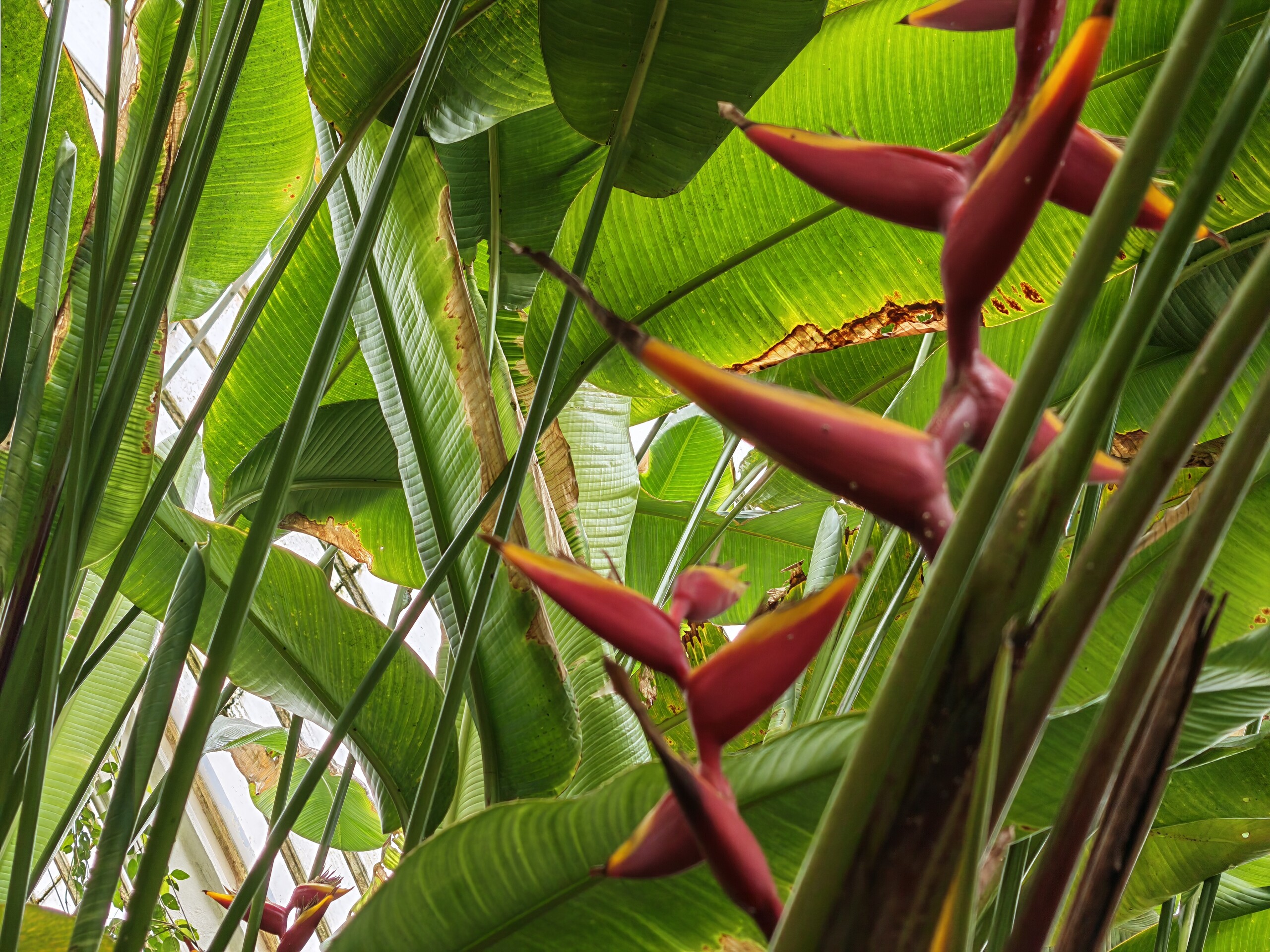 Im Palmenhaus kann man über eiserne Stufen auch einen Umgang erreichen, welcher einen Blick von oben auf die üppige tropische Pflanzenwelt erlaubt. Kontrastreicher wirkt auch hier das Foto aus dem Honor-Phone, bei der Detailvielfalt und Schärfe gewinnt aber wieder das iPhone.
