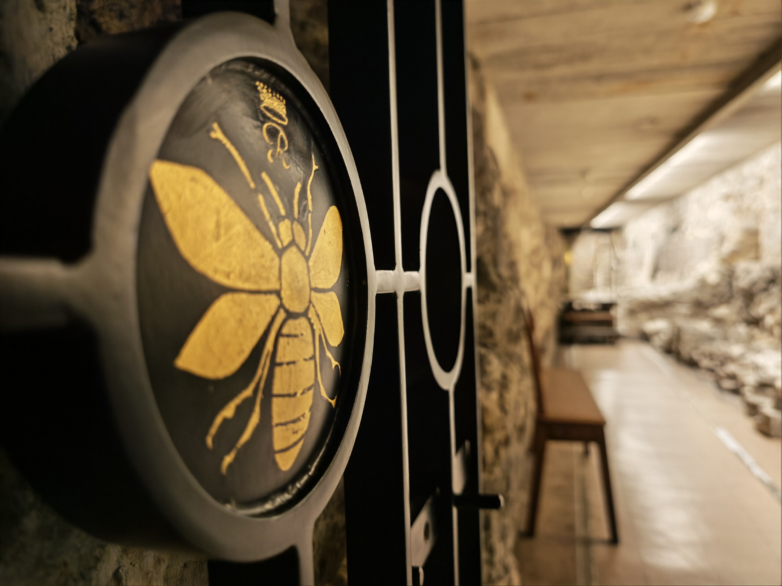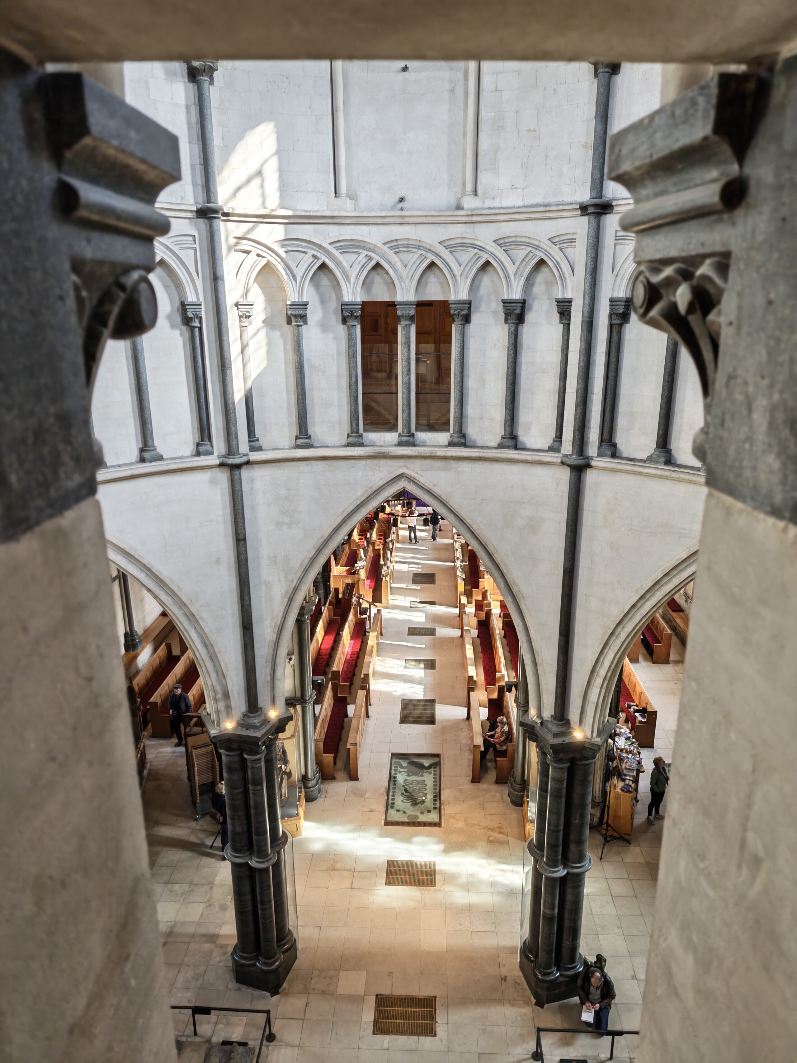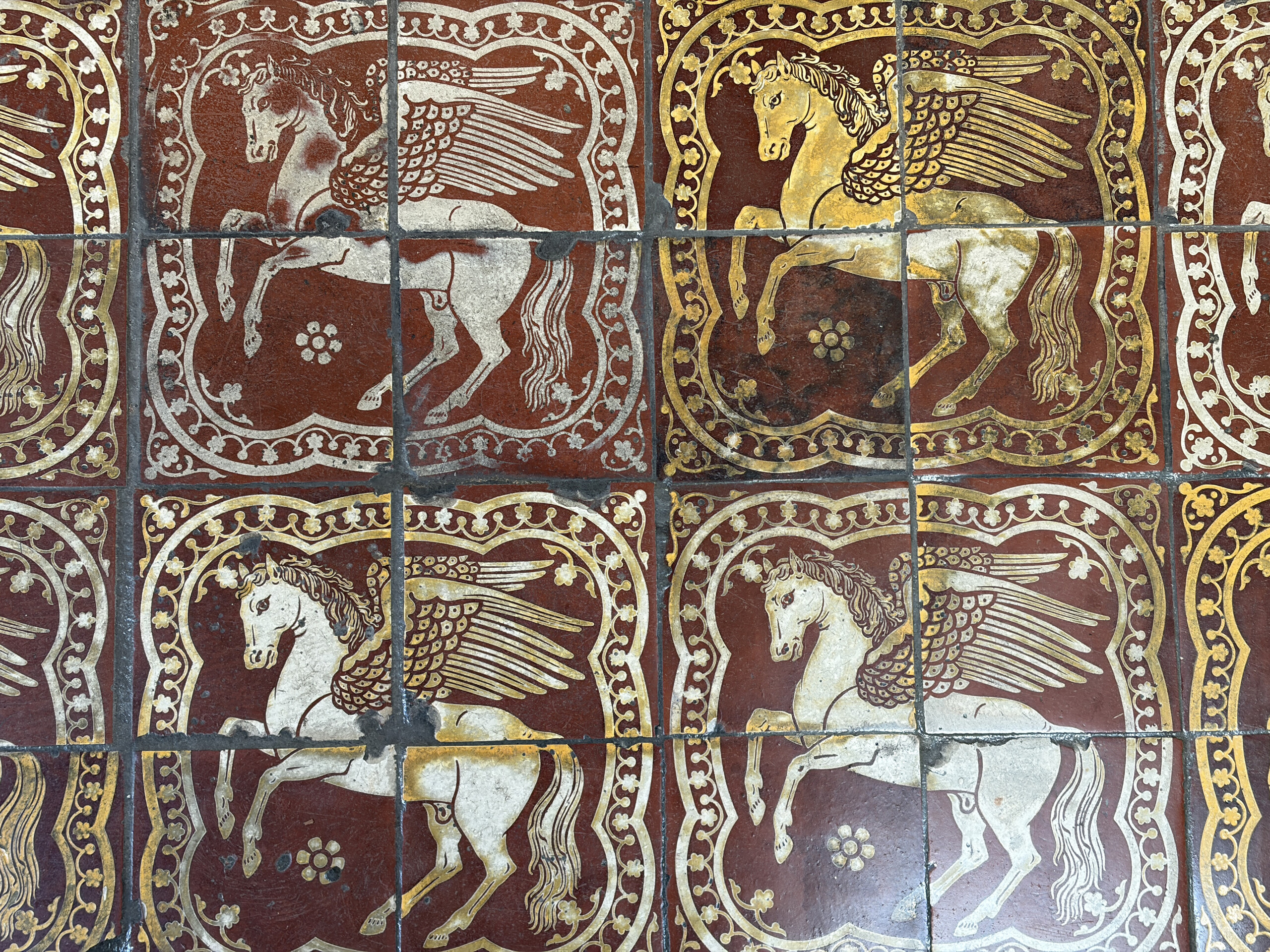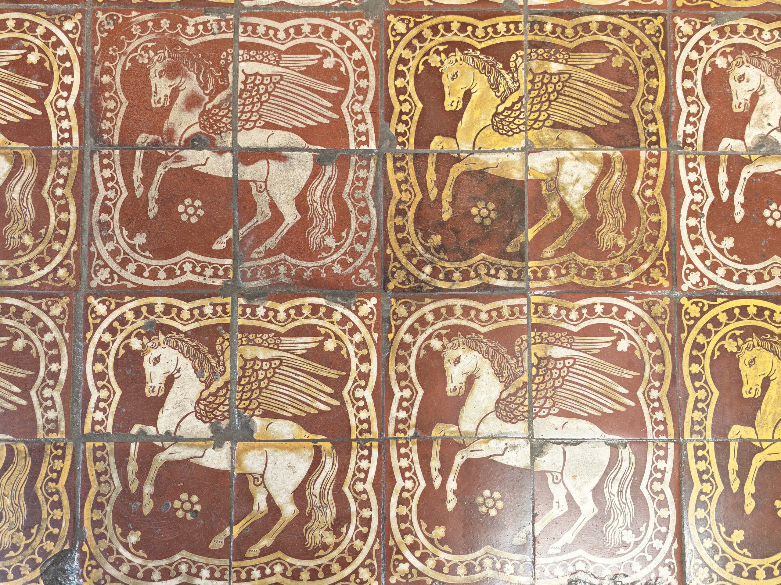 Und auch die Kirche ist ungewöhnlich: Die runde Bauform, die vielen Grabmäler von Rittern und eine Galerie, welche Fließen mit Fabeltieren und mystischen Symbolen zeigt.