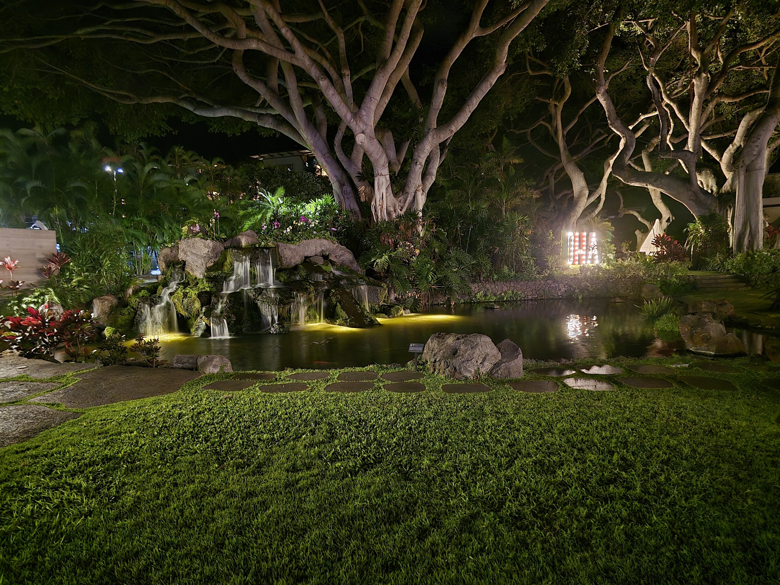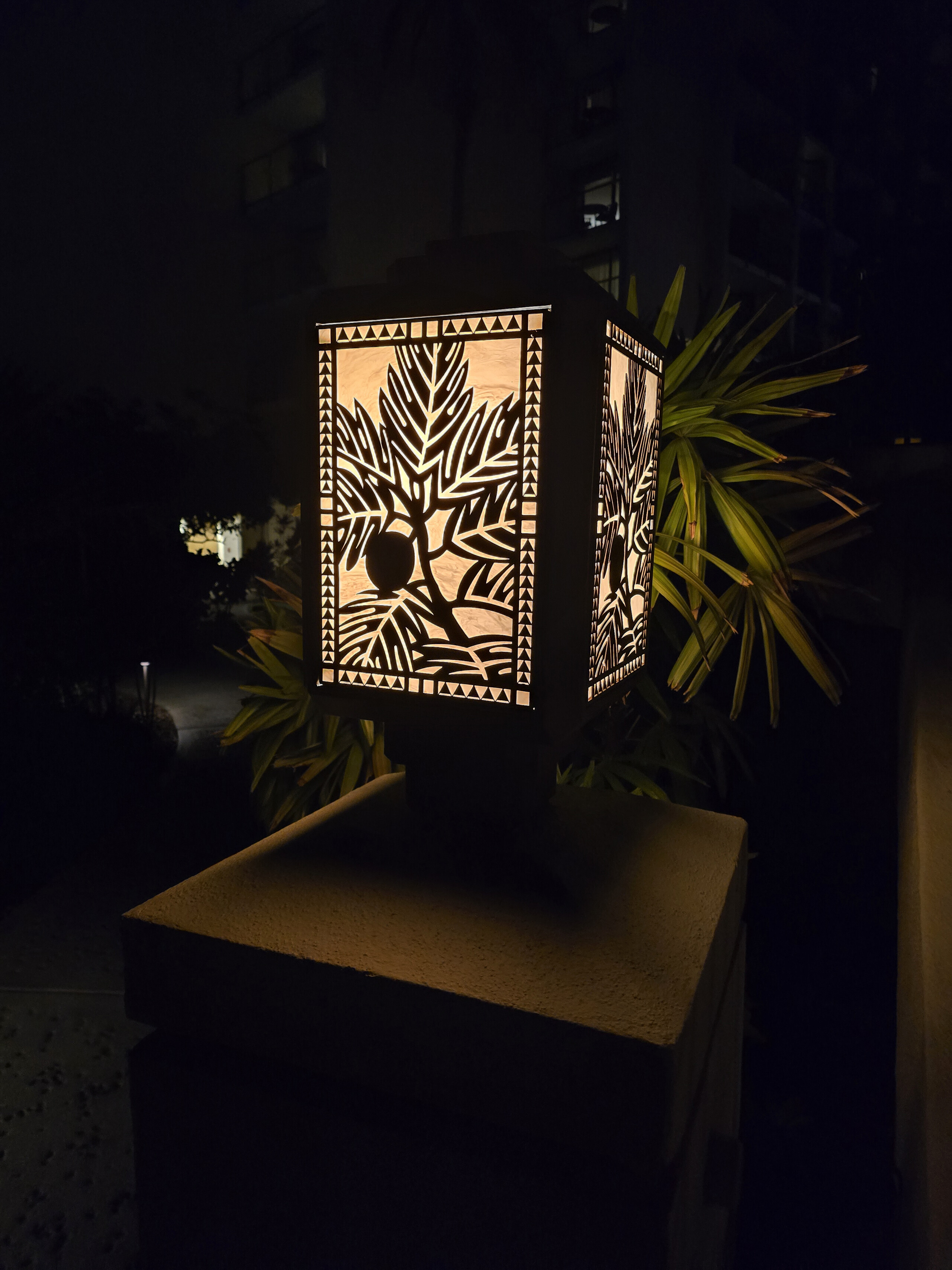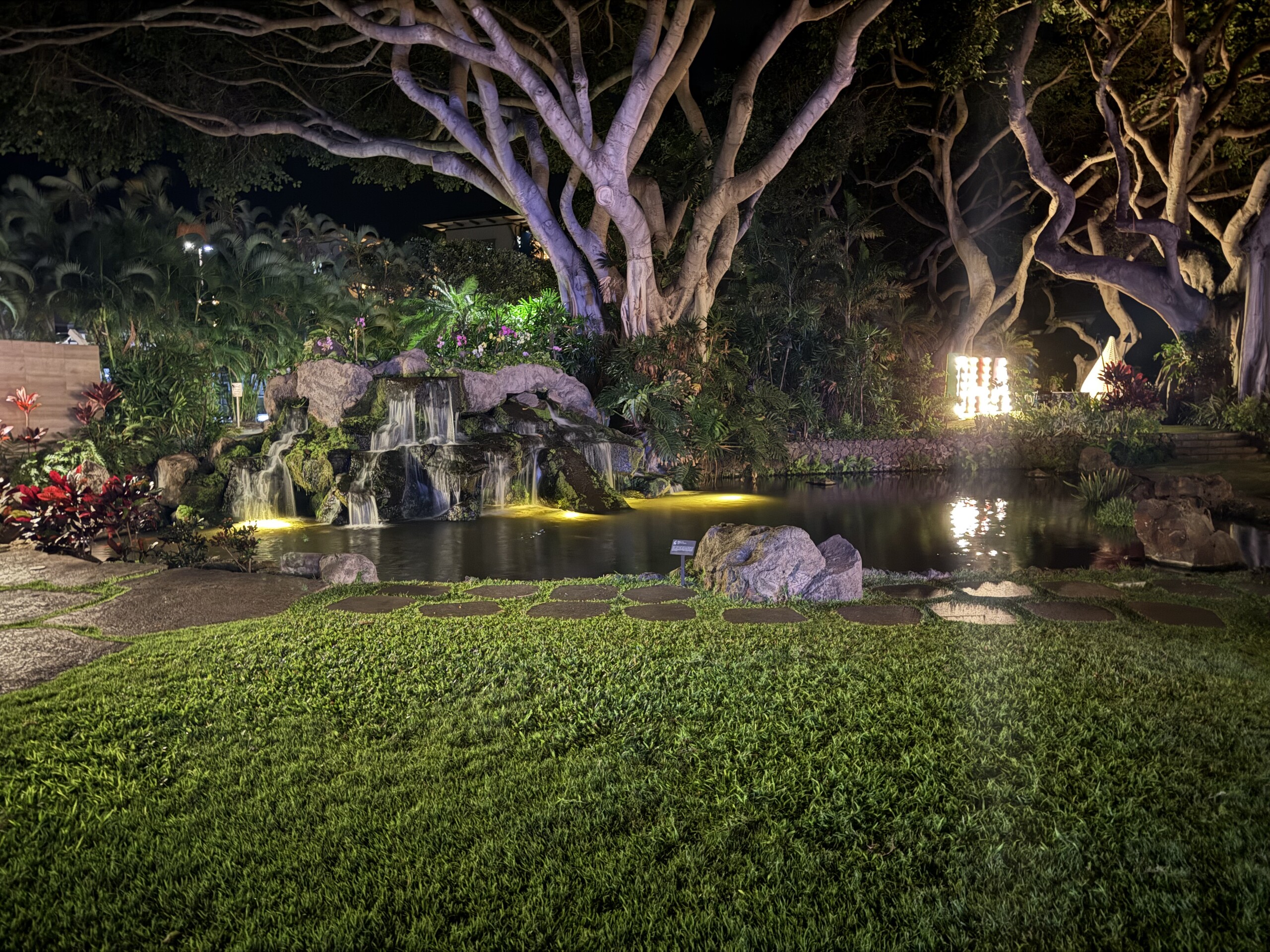 Aloha heißt "Hallo" und auch "Auf Wiedersehen", beschreibt aber zugleich diese ganz besondere Willkommenskultur, welche die Hawaiianer einem sofort vermitteln. Als riesiger beleuchteter Schriftzug steht es im Garten unseres Hotels und bietet nachts das perfekte Motiv für einen ersten Vergleich. Wirkliche Unterschiede in der Bildqualität fallen erst auf, wenn man die Fotos vergrößert: Das iPhone bringt ein paar mehr Details und generell eine etwas höhere Bildschärfe ins Bild. Die Unterschiede sind aber so marginal, dass wir uns schon auf die weiteren Aufnahmen freuen.