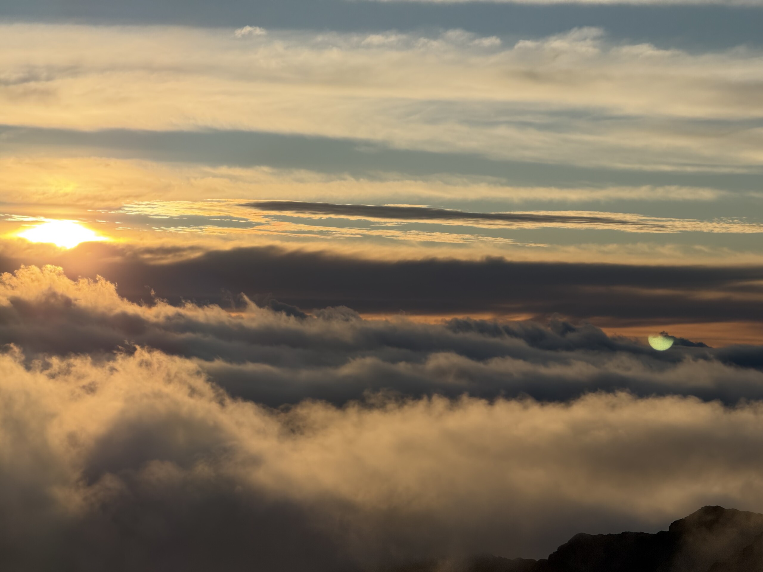 Am sehr frühen Morgen brechen wir auf zu unserem nächsten Ziel: Zum Haleakala, dem Haus der Sonne. Dabei handelt es sich allerdings nicht um ein Gebäude, sondern um den mit 3.055 Metern höchsten Berg auf Maui, einem erloschenen Vulkan, der die Insel einst geformt hat. Er ist den Hawaiianern immer noch heilig, die Gipfelregion ein Nationalpark und man soll dort wunderschöne Sonnenaufgänge bewundern können.
