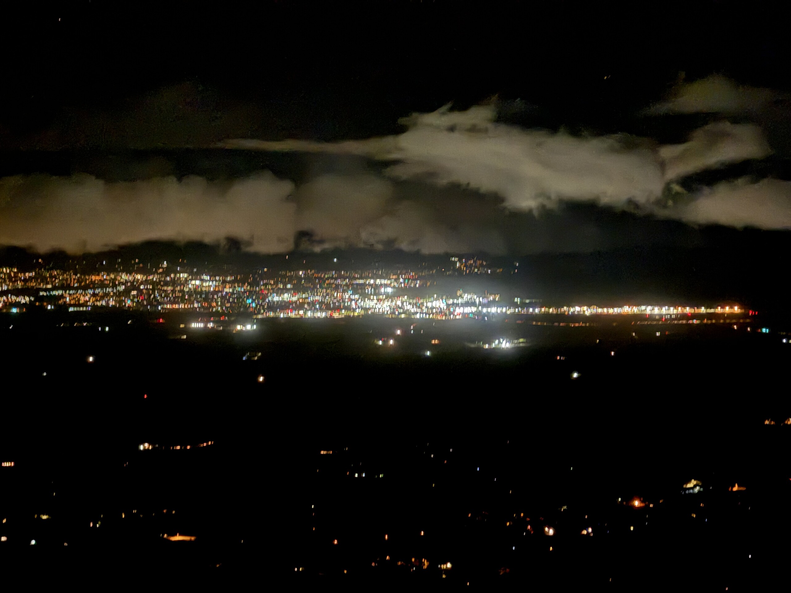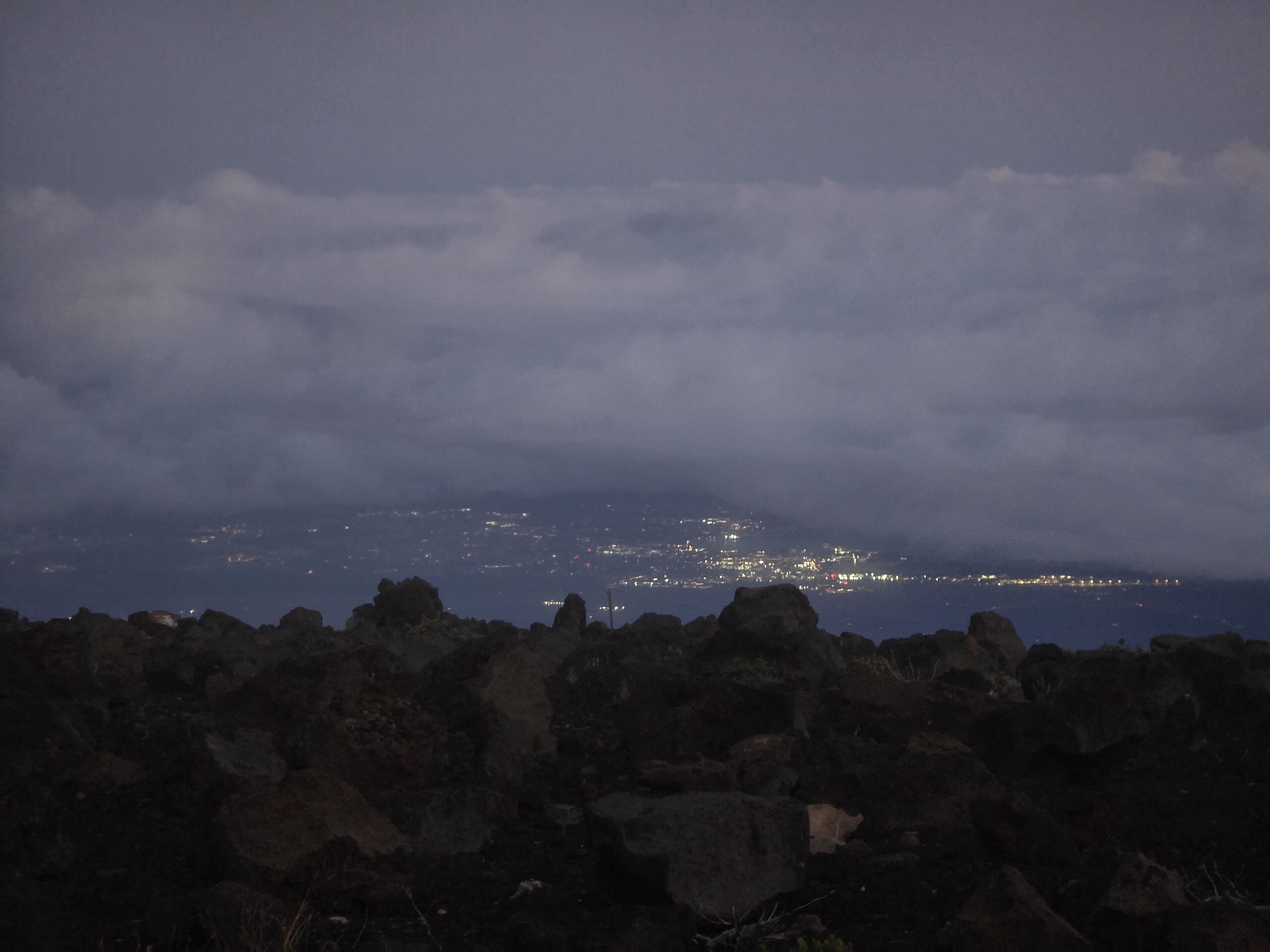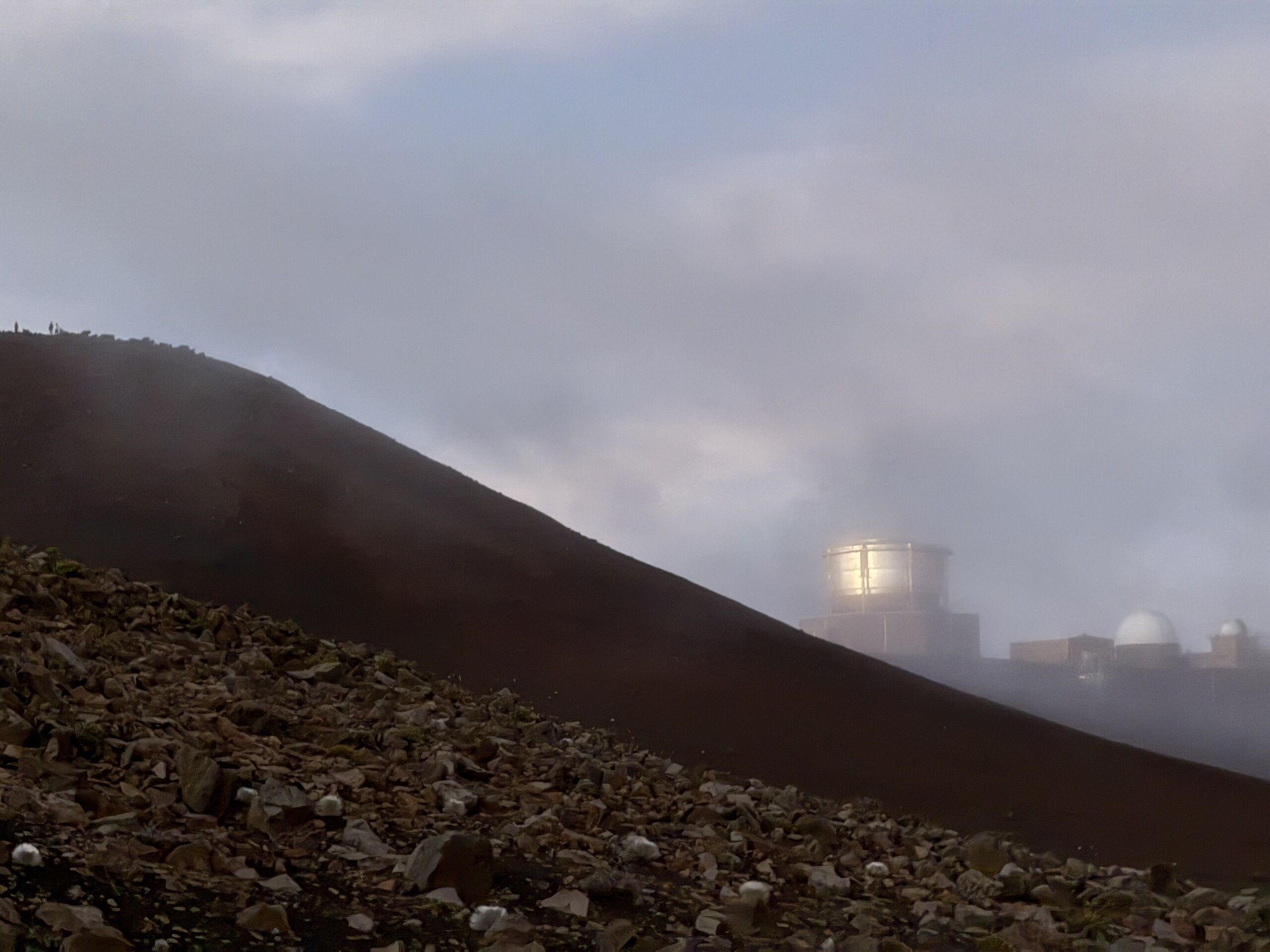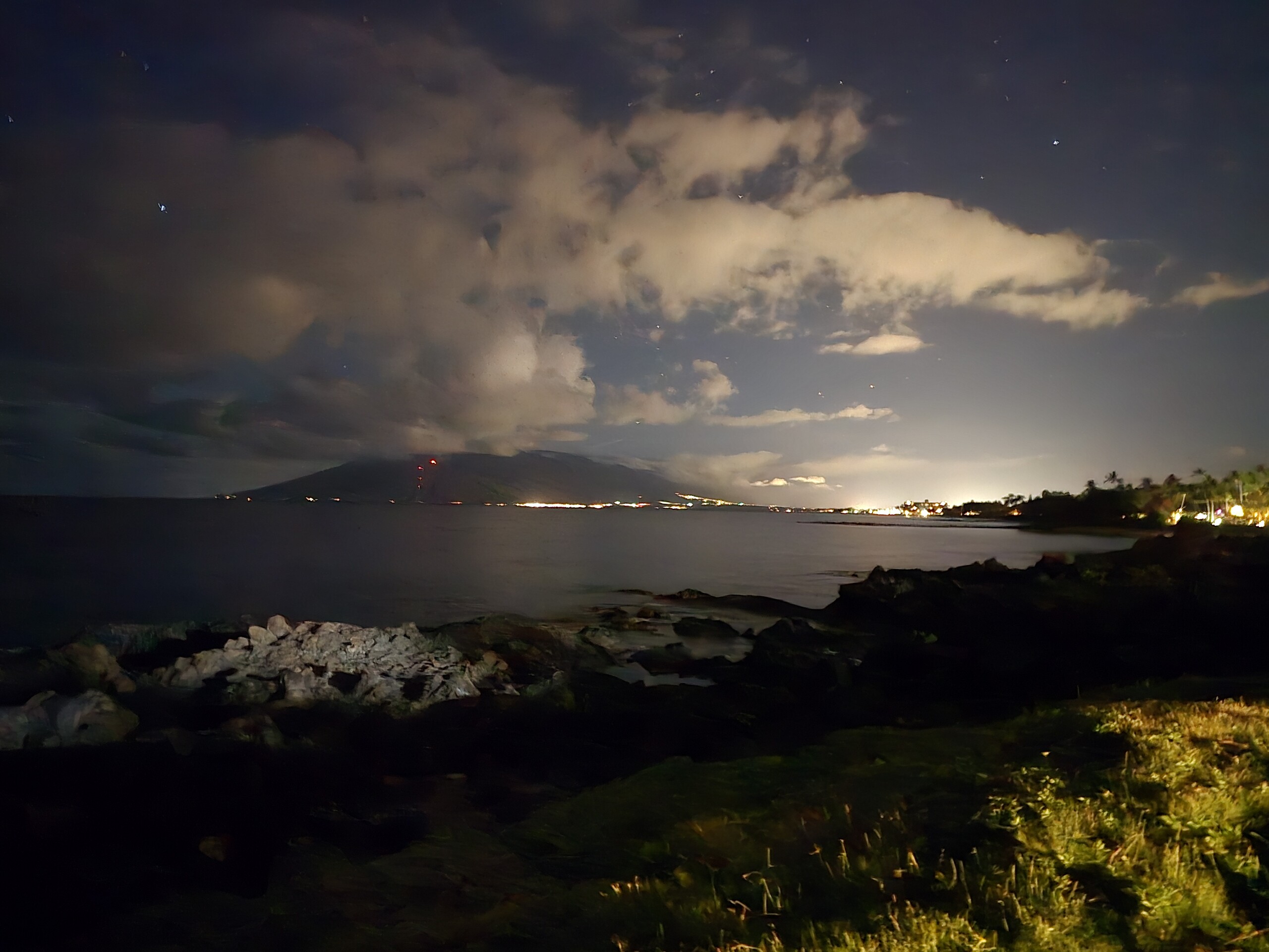 4 °C sind eine ungewohnte Temperatur auf Hawaii, aber in dieser Höhe und so früh am Tag durchaus möglich. Viele Menschen warten schon auf die Sonne, aktuell sind nur helle Sterne am Himmel zu sehen, der Horizont leuchtet aber schon. Wir machen ein stimmungsvolles Bild der wartenden Masse, dabei gelingt dem iPhone allerdings nur eine etwas unscharfe Aufnahme, während das Samsung-Foto körnig, aber deutlich schärfer wirkt.