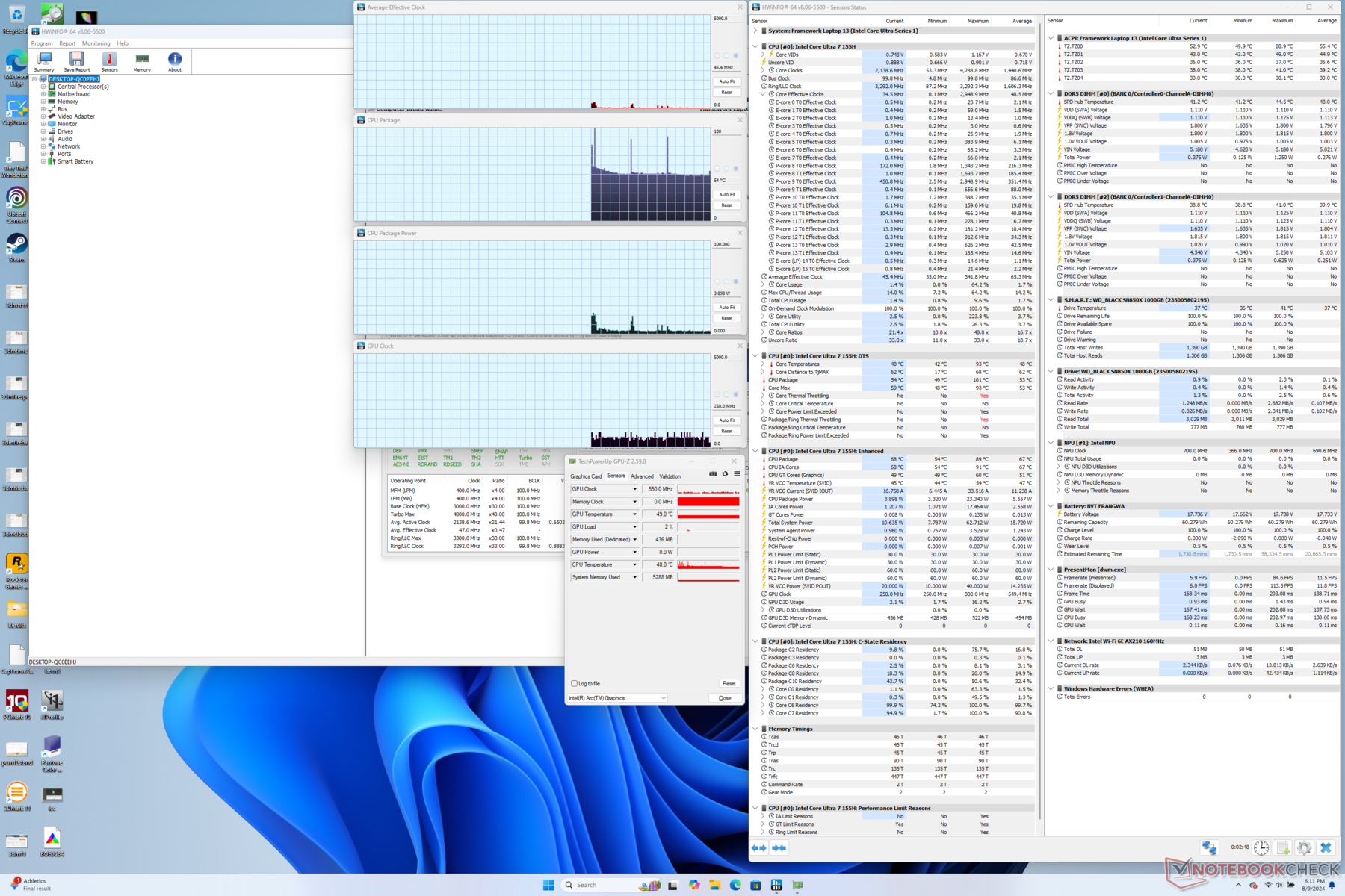 Die WLAN-Laufzeit beträgt 10,5 Stunden und ist damit länger als bei der Core i7-1370P-Version, aber kürzer als bei der Ryzen 7-Version. Bei der Konfiguration mit der weniger anspruchsvollen Basis-Display-Option wird eine längere Akkulaufzeit aufgrund der geringeren Auflösung und Bildwiederholrate erwartet.