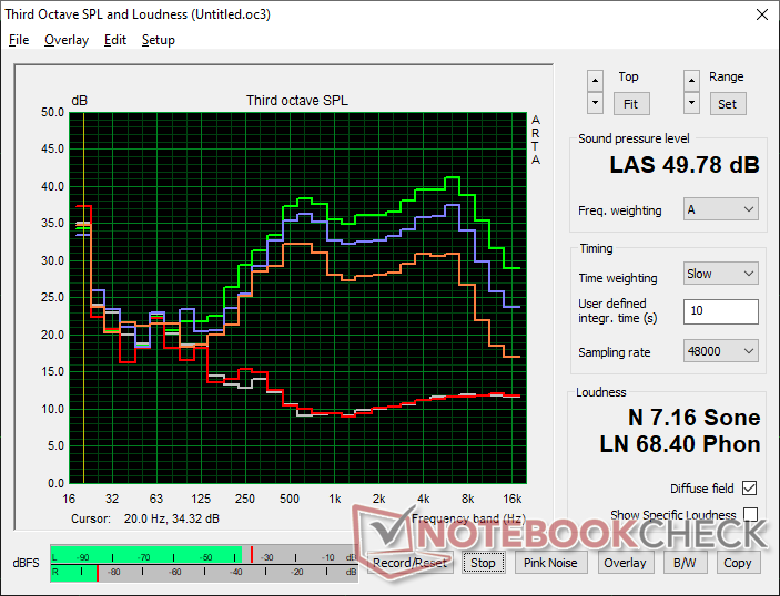 (+) | Die Lautsprecher können relativ laut spielen (84.7 dB)