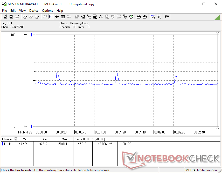 Wie von einem Alder-Lake-P-System der 12. Generation zu erwarten, ist der Gesamtstromverbrauch höher als bei vielen Laptops, die mit Tiger-Lake-U Prozessoren der 11. Generation ausgestattet sind. Die Ausführung von Prime95 verbraucht 60 W und ist damit 25 % anspruchsvoller als im Vorjahr. Die höhere Leistung des Prozessors gibt es in dieser Hinsicht nicht zum Nulltarif.