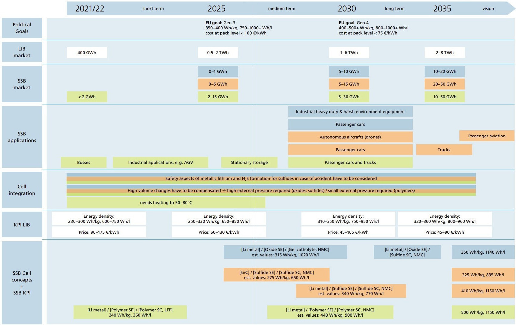 Das Fraunhofer ISI hat eine Roadmap für Feststoffbatterien herausgegeben, die Entwicklungspotenziale von Feststoffbatterien mit denen heute gängigen Lithium-Ionen-Akkus für den Zeitraum der kommenden 10 Jahre vergleicht. Die Expertenstudie kommt zu dem Ergebnis: Feststoffbatterien haben viel Potenzial, müssen ihre Kommerzialisierbarkeit aber in den kommenden fünf Jahren unter Beweis stellen. Das Fraunhofer ISI geht davon aus, dass oxid- und sulfidbasierte Feststoffakkus in den nächsten fünf Jahren keine Rolle im Automobilmarkt spielen werden.