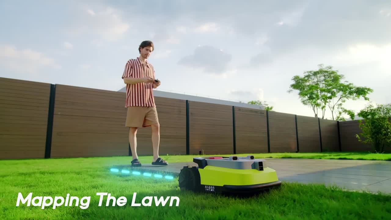 Vor dem ersten Einsatz muss in bekannter Manier die Mähzone einmal umfahren werden. Dies kann wahlweise per virtueller Fernsteuerung über die App oder auch durch das Hinterherziehen des Mähroboters an einem Band erfolgen. Über die App lassen sich unter anderem verschiedene Zonen verwalten.
