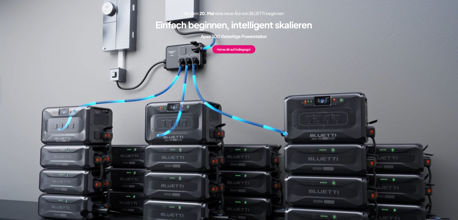 Derzeit ist die Apex 300 auf Indiegogo vertrieben, am heutigen 1. August ist aber der offizielle Launch mit offizieller Produktseite. Der Normalpreis beträgt 2.399, zum Launch wird das Gerät kurzzeitig für 1.799 Euro angeboten. Bluetti hat für unsere Leser außerdem folgenden 8-Prozent-Rabattcode geschickt: "BLUETTINBC"