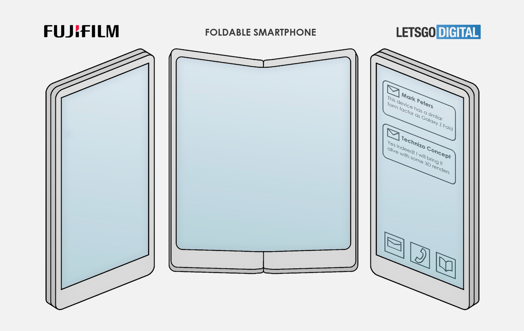 Fujifilm hat beim World Intellectual Property Office (WIPO) ein faltbares Smartphone patentiert, das von LetsGoDigital und Technizo Concept in schicken Renderbildern visualisiert wurde. Das ist vor allem spannend, weil dieses Patent das Interesse von Fujifilm am Smartphone-Markt belegt, nachdem LG aus diesem Markt ausgestiegen ist könnte diese Lücke also bald von einem Kamera-Spezialisten gefüllt werden.