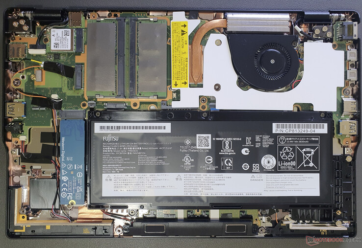 Die Anschlüsse sind beim Fujitsu LifeBook gut gewählt: Man erhält zweimal USB-C 3.2 Gen2, mit Ladefunktion und DisplayPort 1.2, pro Seite je einmal USB-A 3.2 Gen1, HDMI 2.0b, einen microSD-Kartenleser, Gigabit-RJ45, einen optionalen Smartkartenleser, eine 3,5-mm-Buchse und eine Kensington-Schlossvorrichtung. Auf der Laptop-Rückseite befindet sich bei WWAN(-ready)-Modellen zudem ein nanoSIM-Slot.