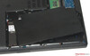 Fujitsu setzt auf ein matt-schwarzes Kunststoffgehäuse. Die Handballenablage ist mit einer Riffeltextur versehen, Deckelrückseite und Unterschale verfügen über angeraute Oberflächen. Alles in allem zeigt sich das Chassis wenig anfällig für Fingerabdrücke. Die Spaltmaße stimmen, es sind keine scharfen Kanten zu spüren. Baseunit und Deckel können viel zu deutlich verdreht werden. Eine Wartungsklappe erlaubt den schnellen Zugriff auf den Akku, die SSD und den Arbeitsspeicher.