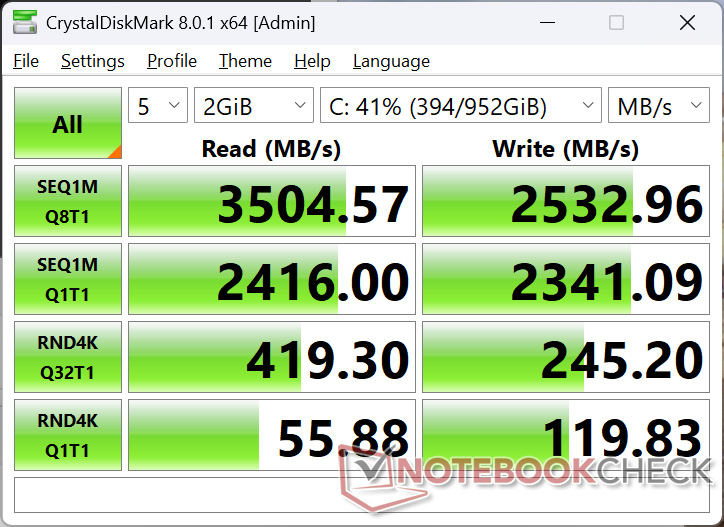 Der Ryzen 7 7735HS mag in die Jahre gekommen sein, aber die rohe Prozessorleistung ist immer noch anständig, und die Ergebnisse sind vergleichbar mit denen der neueren Core Ultra 5 125H oder etwa 20 bis 25 Prozent schneller als der effizientere Core Ultra 7 256V. Beachtet werden sollte, dass im Gegensatz zu vielen neueren CPUs, der Ryzen 7 7735HS nicht über eine integrierte NPU verfügt, die für lokale KI-Funktionen wie Co-Pilot+ erforderlich ist.