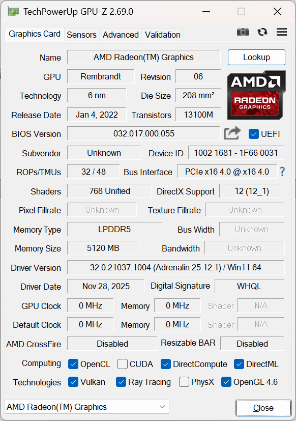 | Durchschnittliche AMD Radeon 680M (23.7 - 46, n=5) | |