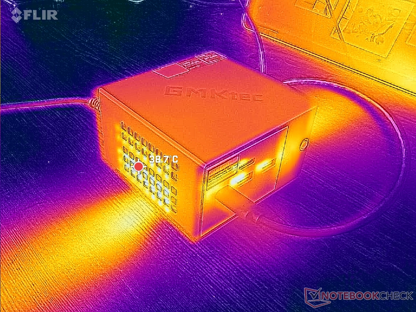 Die CPU stabilisiert sich bei 4,1 GHz, 50 W und 81 °C, wenn Prime95 Stress läuft, was tatsächlich wärmer ist als die Werte, die wir auf der EVO-X1 mit der neueren und schnelleren Zen-5-CPU messen. Auch bei der Ausführung von Spielen ist die Kerntemperatur weiterhin um einige Grad Celsius wärmer. Die NucBox K13 mit dem effizienteren Core Ultra 7 256V bietet sowohl eine schnellere Gaming-Leistung als auch eine kühlere Betriebstemperatur.