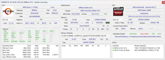 Im Moment ist nur eine Hauptkonfiguration mit der Ryzen 7 7735HS CPU, 32 GB RAM und 512-GB-SSD verfügbar. Andere Konfigurationen können den Speicher verdoppeln, aber der verlötete 32-GB-Speicher und die ältere Zen-3+-CPU bleiben gleich.