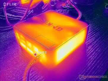 Beim Spielen zieht das System etwa 73 W, was für einen Mini-PC mit nur integrierter Grafik relativ viel ist. Der langsamere NUC 13 Pro zum Beispiel benötigt unter ähnlichen Bedingungen nur 45 W. Der hohe Verbrauch steht im Einklang mit unseren obigen Erkenntnissen über die höhere Leistungsaufnahme der NucBox K6.