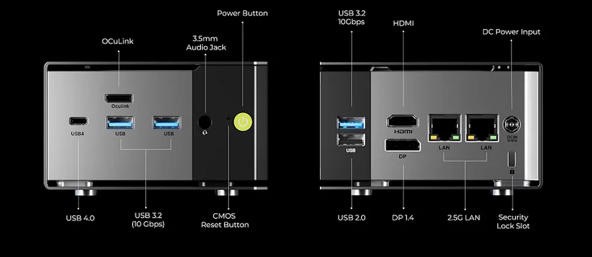 Dabei kommt eine PCIe 3.0-SSD zum Einsatz, allerdings werden Flash-Speicher auch unter Nutzung einer PCIe 4.0-Anbindung unterstützt - und bei beiden M.2 2280-SSDs. Im Gegensatz zu der oder den SSDs lässt sich der Arbeitsspeicher nicht wechseln oder erweitern. Ganz erheblich erhöhen lässt sich hingegen die Grafikleistung, und zwar unter Nutzung einer dedizierten Grafikkarte - über OCuLink. Der OCuLink-Anschluss wird dabei über vier PCIe 4.0-Lanes angebunden, was durchaus einen Flaschenhals darstellen könnte. Als APU kommt der betagte AMD Ryzen 5 Pro 6650H zum Einsatz, dessen sechs Rechenkerne können doppelt so viele Threads bearbeiten, angegeben wird eine Taktfrequenz von bis zu 4,5 GHz und eine TDP von maximal 40 Watt. Gekühlt wird mithilfe von zwei Lüftern.