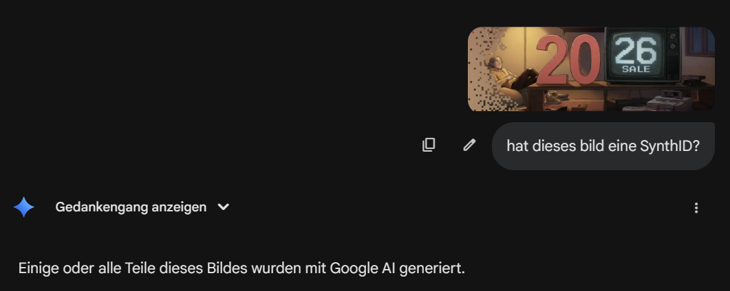 Wir haben per Gemini das Bild auf das Vorhandensein einer SynthID geprüft. Das Ergebnis: „Einige oder alle Teile dieses Bildes wurden mit Google AI generiert.“ Damit steht fest: GOG hat Googles Bild-KI beim Erstellen des Bildes verwendet.
