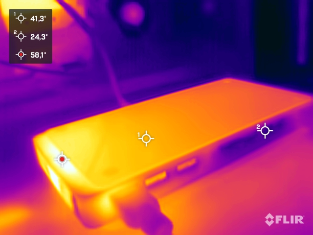 Beim Thema Energiebedarf kommt der GPD G1 der Einsatz des mobilen Grafikchips zugute. Auf den Navi-33-Chip selbst entfallen bis zu 100 Watt, welche im Test auch stabil erreicht werden. Zusammen mit den weiteren Komponenten und diversen Leistungsverlusten, hervorgerufen durch das Netzteil, zeigt unser Messgerät in der Spitze knapp 130 Watt, welche allein auf die eGPU fallen. Zusammen mit unsererm GPU-Testsystem ist es somit auch nicht verwunderlich, dass die Energiebedarfe hier vergleichsweise gering ausfallen: Knapp 260 Watt beim Spielen und 245 Watt beim Stresstest (FurMark) sind ein angemessenes Ergebnis und insgesamt etwas weniger als bei einer Nvidia GeForce RTX 4060.