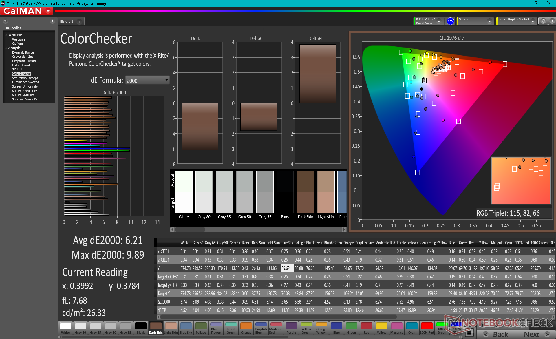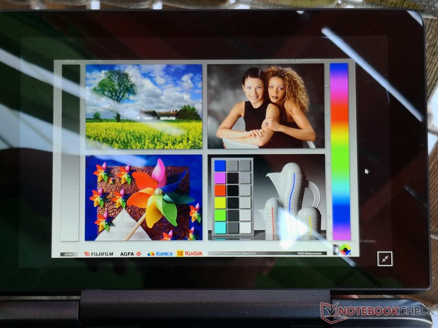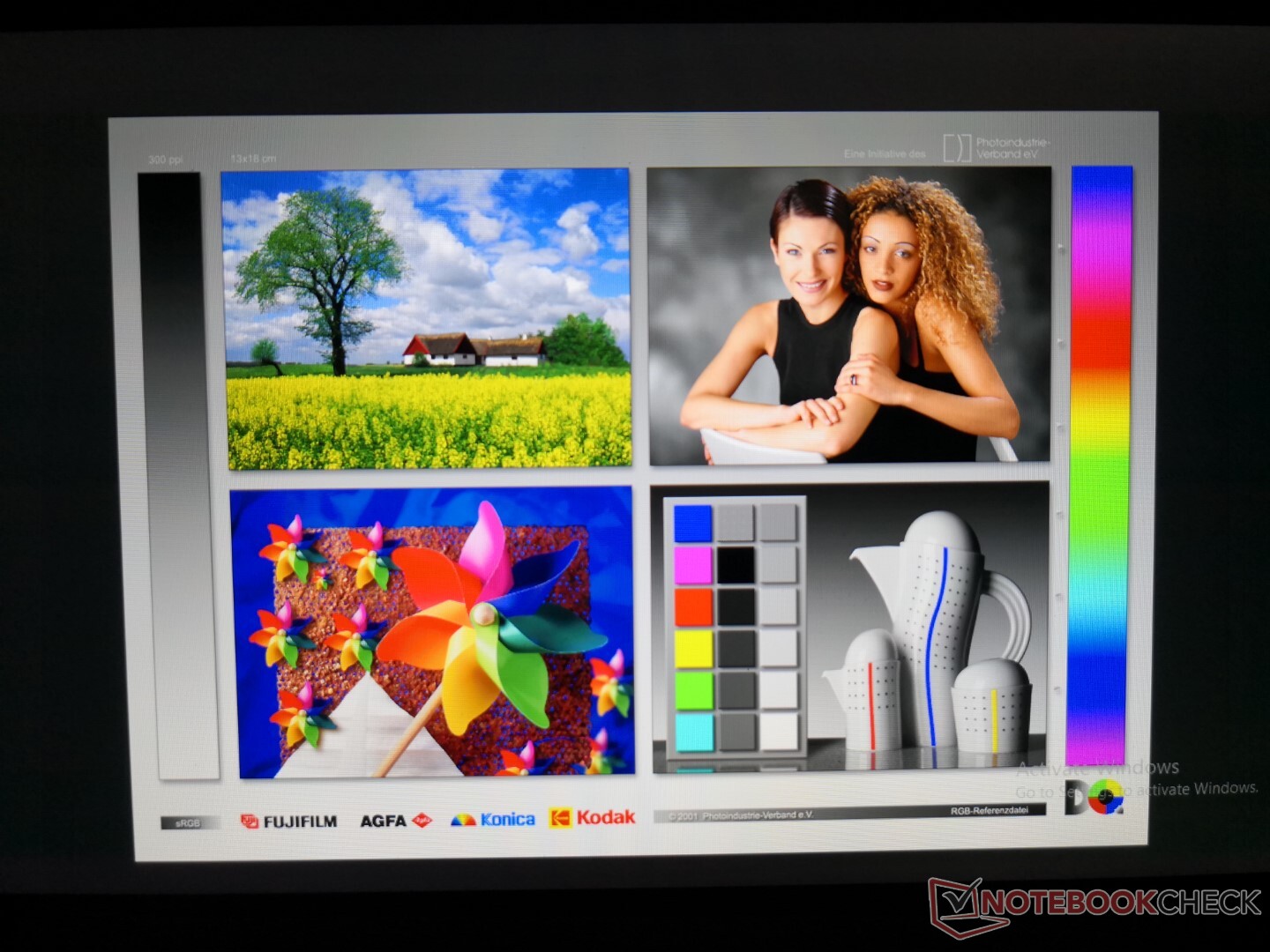 Die Messungen mit dem X-Rite-Kolorimeter zeigen, dass die Farbtemperatur etwas zu kühl ist. Nach einer ordnungsgemäßen Kalibrierung verbessern sich die durchschnittlichen Graustufen- und ColorChecker-DeltaE-Werte von 4,5 auf 2,3 bzw. von 6,2 auf 5,4. Aufgrund des begrenzten Farbraums des Panels werden die Farben bei höheren Sättigungsgraden immer ungenauer.