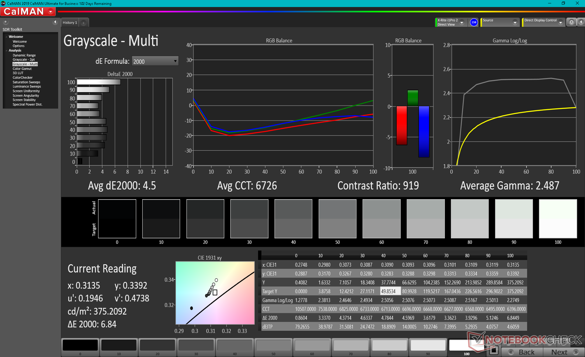 ΔE Greyscale Calman: 4.5 | ∀{0.09-98 Ø5}