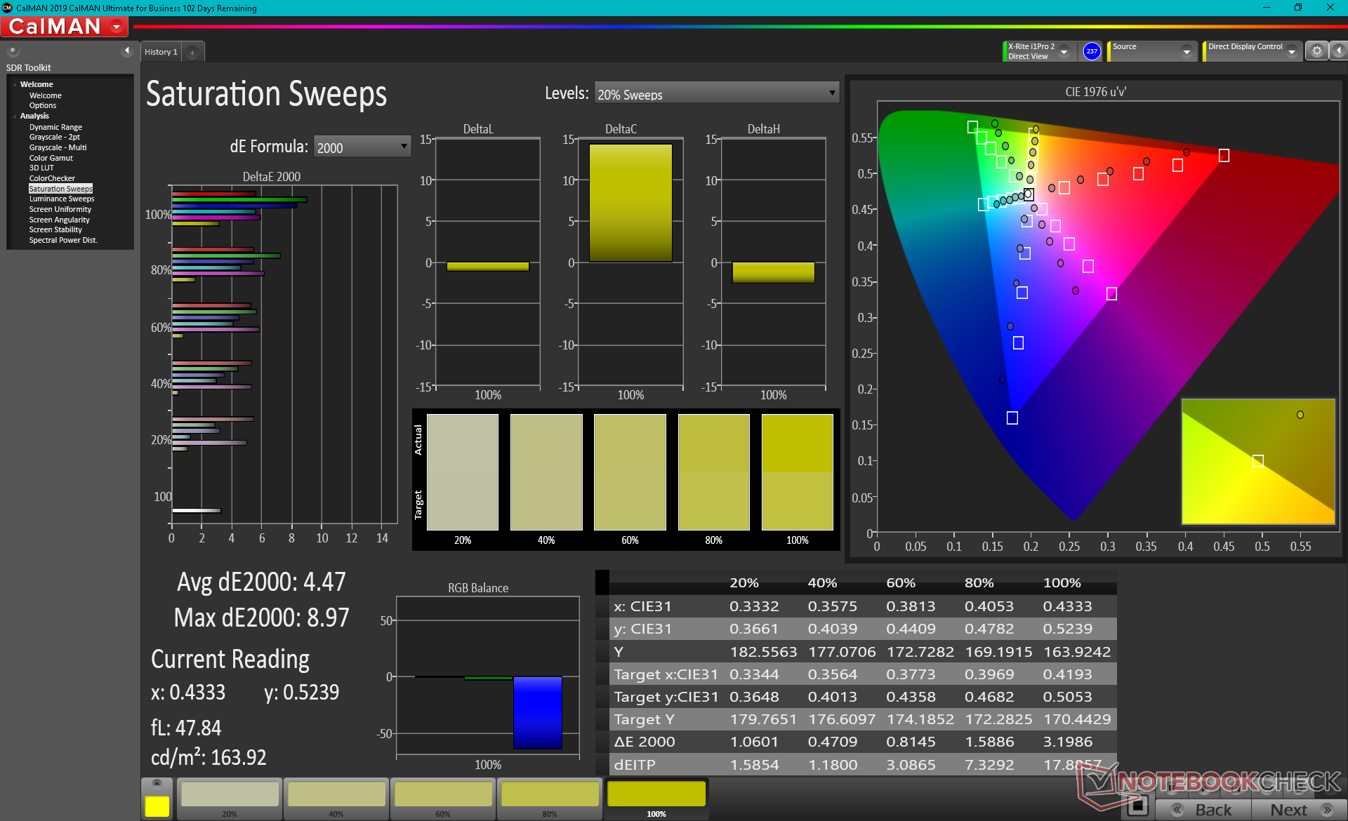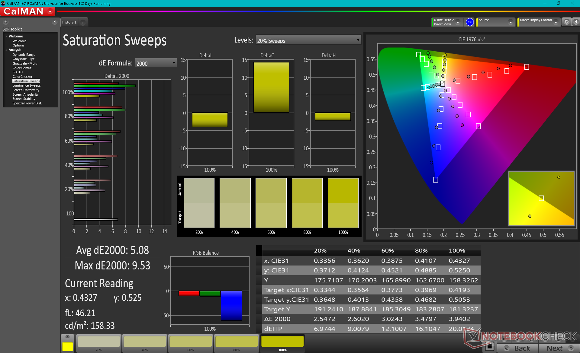 | sRGB Coverage (%) | 65.2 | 89.6 37% | 99.8 53% | 99.2 52% | 100 53% | |