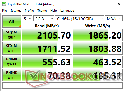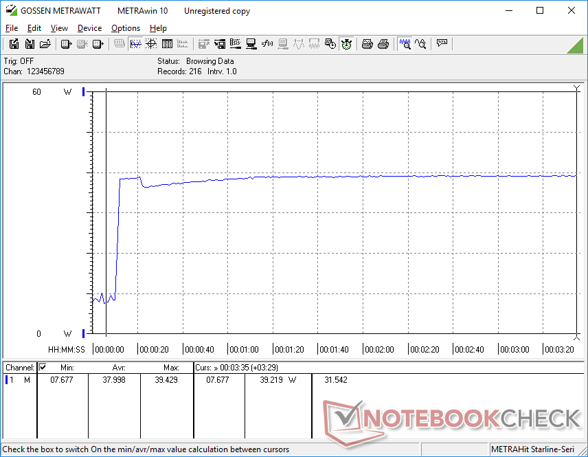Der Akkubetrieb schränkt die Leistung nicht ein. Ein 3DMark 11 Test im Akkubetrieb liefert Physik- und Grafik-Scores von 11664 bzw. 5492 Punkten, verglichen mit 11658 und 5397 Punkten im Netzbetrieb.