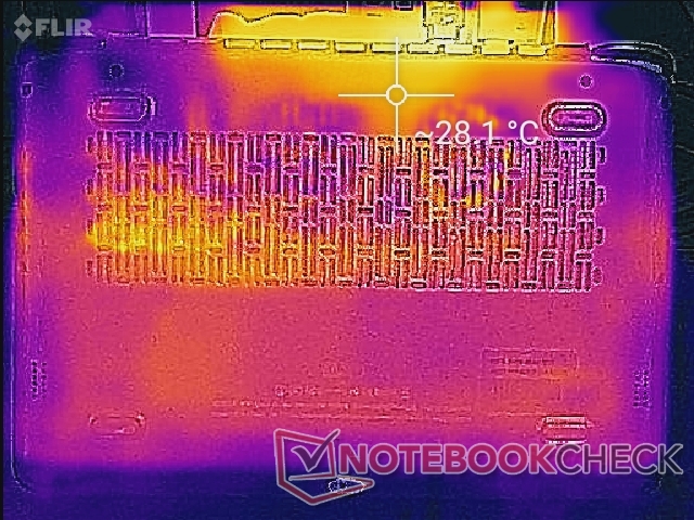 (+) Die Handballen und der Touchpad-Bereich sind mit gemessenen 28.6 °C kühler als die typische Hauttemperatur und fühlen sich dadurch kühl an.