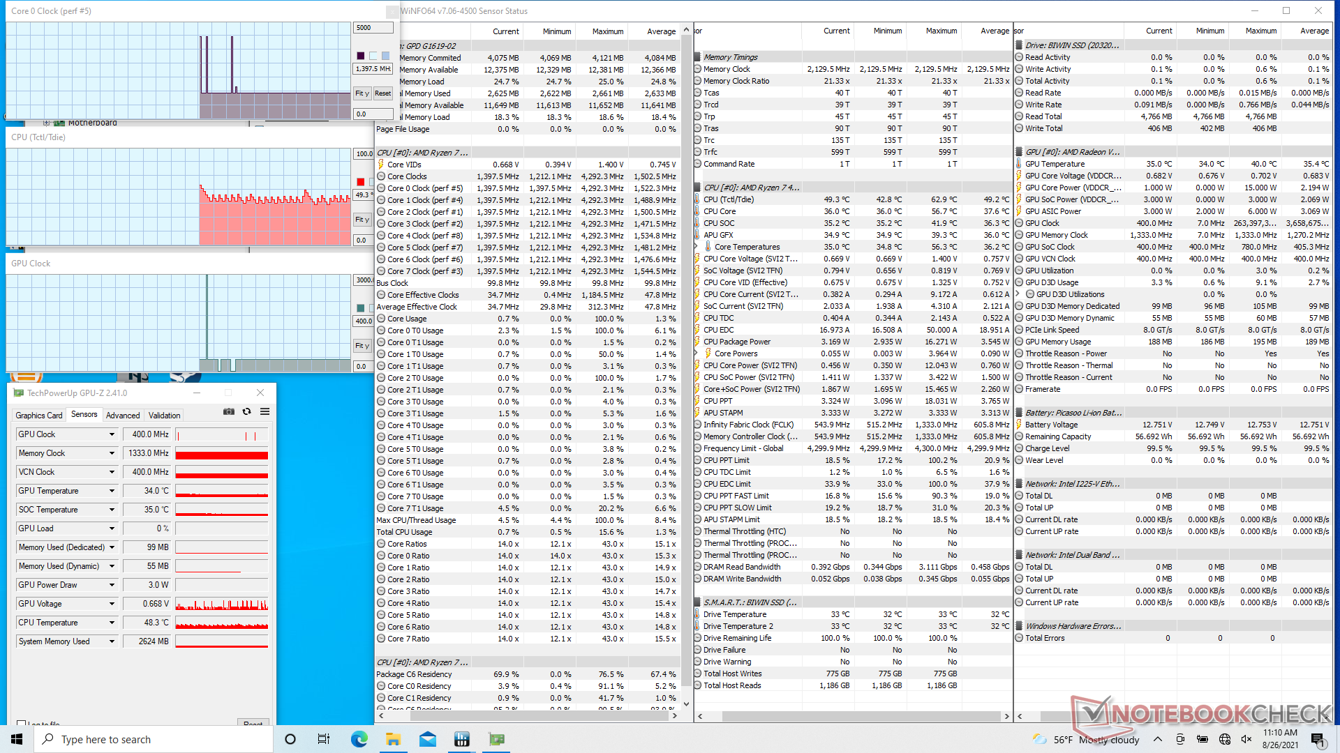 | GPD Win Max 2021 R7 4800U, Vega 8, BIWIN NS200 512GB CNF82GS1G00-512, IPS, 1280x800, 8" | GPD Win 3 i5-1135G7, Iris Xe G7 80EUs, BIWIN NS200 1TB CNF82GS1G02-1TB, IPS, 1280x720, 5.5" | HP Pavilion Aero 13 be0097nr R7 5800U, Vega 8, Intel SSD 660p SSDPEKNW512G8, IPS, 1920x1200, 13.3" | Lenovo Yoga 6 13 82ND0009US R5 5500U, Vega 7, WDC PC SN530 SDBPMPZ-265G, IPS, 1920x1080, 13.3" | Asus ZenBook Flip 13 UX363EA-HP069T i7-1165G7, Iris Xe G7 96EUs, WDC PC SN730 SDBPNTY-1T00, OLED, 1920x1080, 13.3" | Asus ZenBook 13 UX325EA i7-1165G7, Iris Xe G7 96EUs, SK Hynix HFM001TD3JX013N, OLED, 1920x1080, 13.3" | |