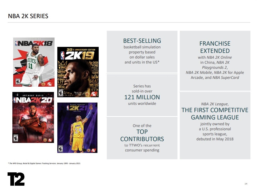 Aus dem Franchise der Red Dead Redemption Games wurden weltweit über 65 Millionen Kopien verkauft. Red Dead Redemption 2 verkaufte sich rund 43 Millionen Mal und ist das zweitmeistverkaufte Spiel in den USA der letzten drei Jahre gemessen am Umsatz in US-Dollar. Auch die Basketballsimulationsreihe NBA 2K verkauft sich rund um den Globus wie geschnitten Brot. Insgesamt wurden von der NBA 2K Serie über 121 Millionen Games verkauft.