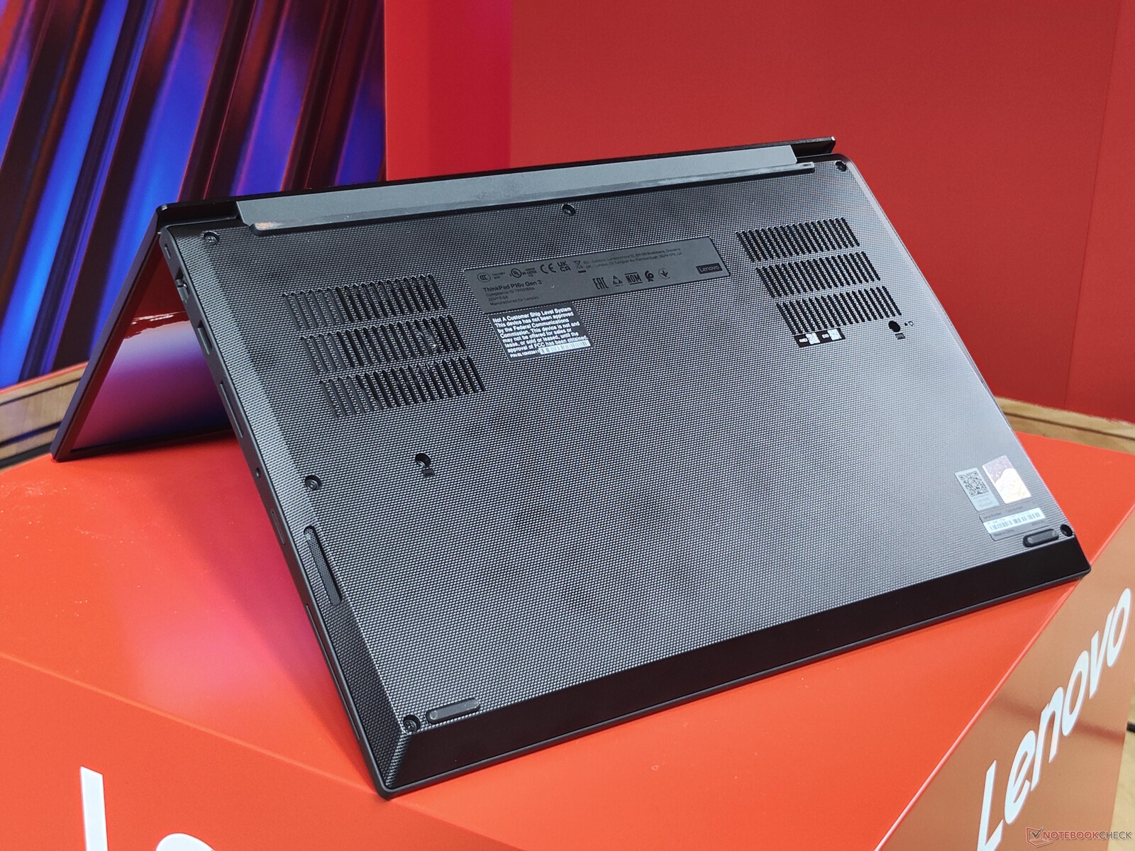 Zu guter Letzt kommt das Lenovo ThinkPad P16v Gen 3 auch mit einem neuen Design. Auffällig ist der Wechsel zu einem moderner aussehenden Drop-Down-Scharnier sowie die strukturierte Bodenplatte an der Unterseite. Laut Lenovo wurde diese Textur gewählt, damit sich die Oberfläche in diesem Bereich etwas hochwertiger anfühlt - schließlich hat das ThinkPad P16v G3 als Budget-Option nur eine Kunststoff-Unterseite.