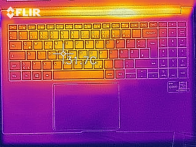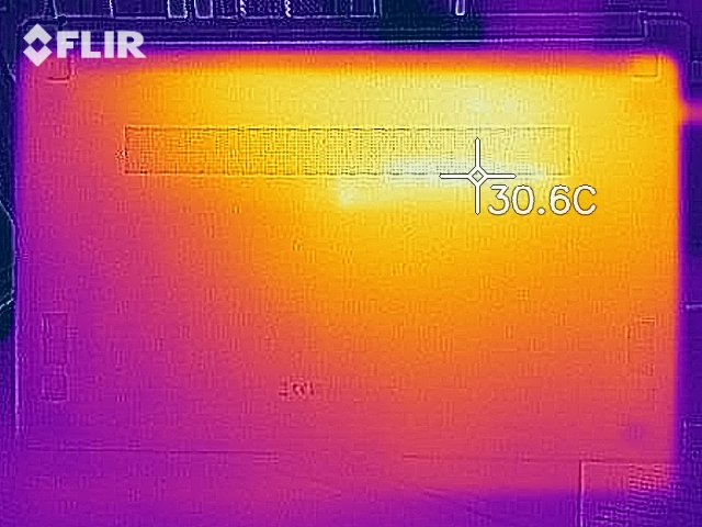 (+) Die Handballen und der Touchpad-Bereich sind mit gemessenen 29.9 °C kühler als die typische Hauttemperatur und fühlen sich dadurch kühl an.