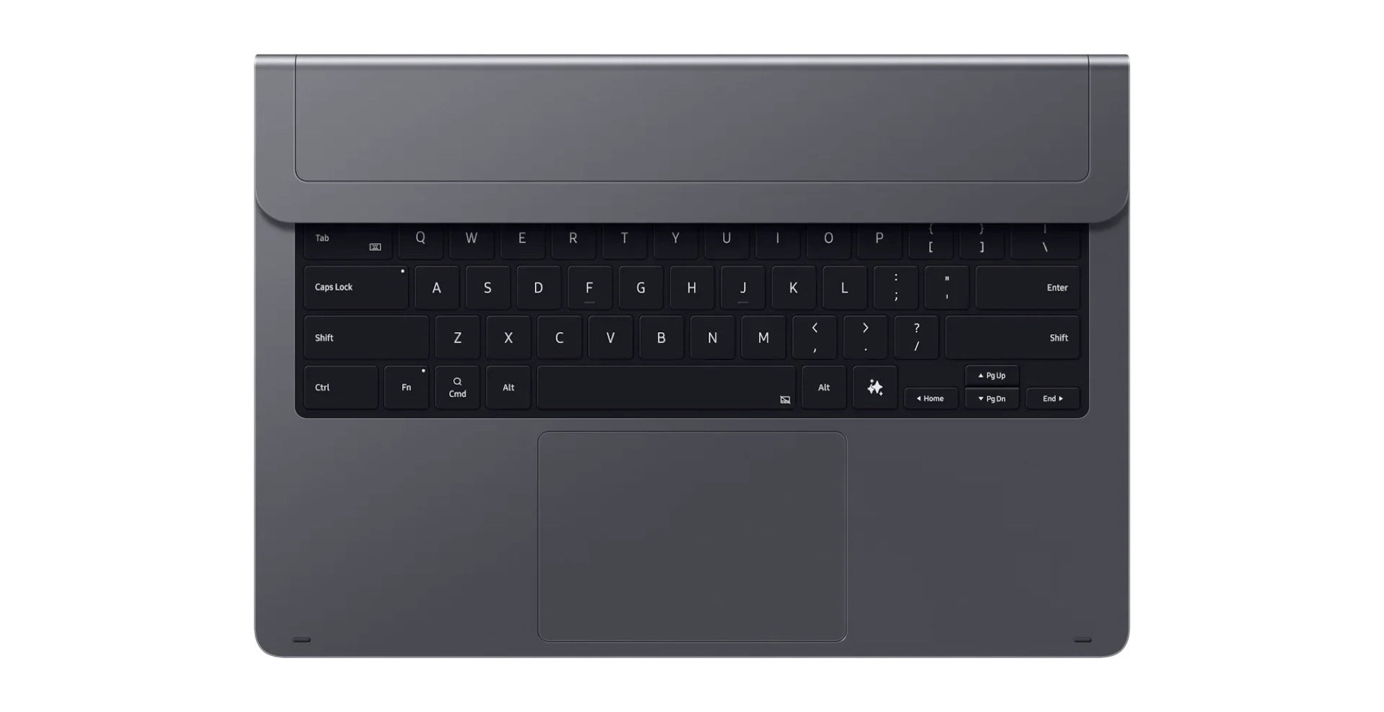 Wird das Tablet mit der Tastatur verbunden, kann dieses sogar wie ein Laptop zugeklappt und transportiert werden, während das Scharnier es erlaubt, das Display in einem komfortablen Winkel zu positionieren. Daten und Strom werden durch die metallischen Pins auf der Rückseite des Tablets übertragen, sodass die Tastatur nicht separat aufgeladen werden muss. Das Pro Keyboard besitzt ein Multitouch-Trackpad, das 14,6 Prozent größer als beim Galaxy Tab S10 Ultra Keyboard Book Cover ausfällt.