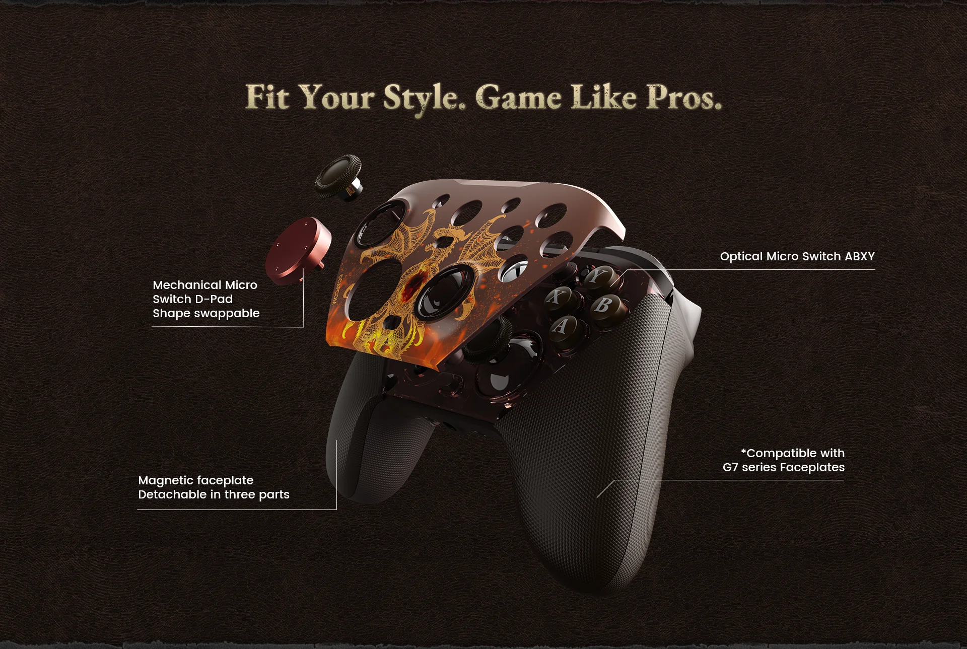 Die GameSir G7 Pro Dragon's Dogma II Edition ist aus einer Zusammenarbeit zwischen GameSir und Capcom zum zweiten Jubiläum von Dragon's Dogma II entstanden. Der Controller besitzt ein eigenes Design auf der Frontblende und das Logo von Dragon's Dogma 2 auf der Ladestation.