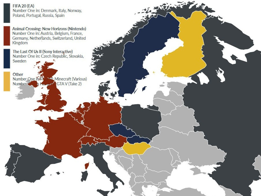 Während Nintendos Lebenssimulation und EAs Fußballkracher jeweils sieben Halbjahres-Hitlisten anführen, schafft es Sonys Action-Adventure, das erst Mitte Juni 2020 erschienen ist, an die Spitze dreier europäischer Landesrankings.