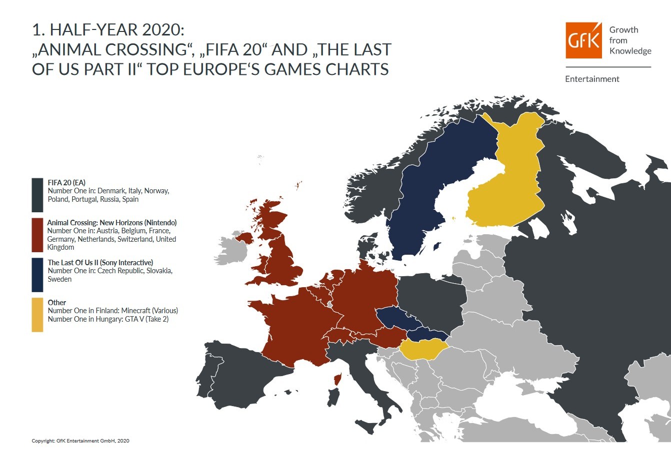 Basis der Sonderauswertung sind die Verkäufe von Video- und PC-Spielen im physischen Markt für die folgenden Länder: Belgien, Brasilien, Deutschland, Dänemark, Finnland, Frankreich, Großbritannien, Italien, Niederlande, Norwegen, Polen, Portugal, Russland, Österreich, Schweiz, Schweden, Slowakei, Spanien, Tschechien und Ungarn.