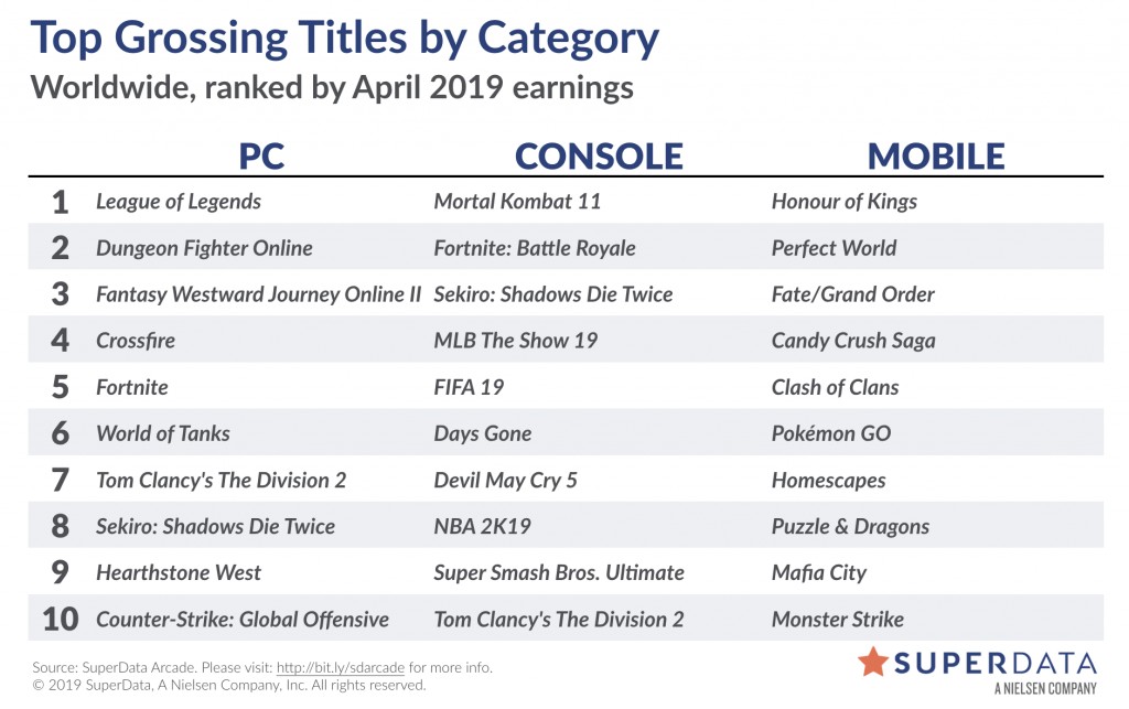 Weltweit gaben Gamer im April 2019 etwa 8,86 Milliarden US-Dollar für digitale Spiele auf Konsole, PC und Handy aus. Das ist ein Plus von 7 Prozent gegenüber dem Vorjahresmonat. Das Marktsegment der Premium-Konsolen war mit einem Plus von 17 Prozent das am schnellsten wachsende Segment. Das Volumen bei den PC-Spielen ging trotz eines moderaten Wachstums im Free-to-Play-Bereich (F2P) gegenüber dem Vorjahr um 4 Prozent zurück.