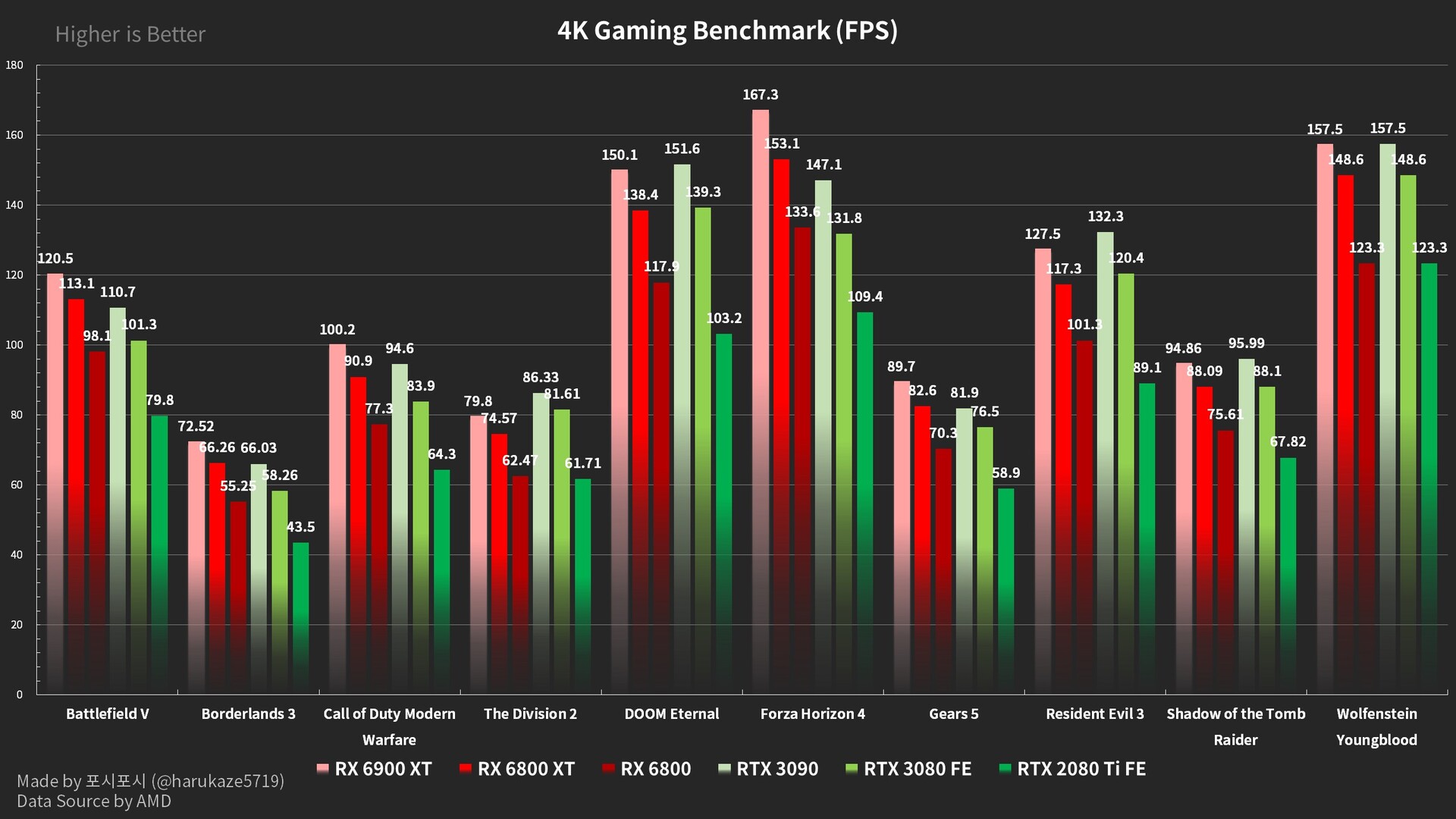 Schon bei der Präsentation der neuen "Big Navi"-Grafikkarten hat AMD versprochen, dass die Konkurrenz übertroffen werden kann, auch wenn das nicht zwangsläufig für die Raytracing-Leistung gilt. Nun hat AMD viele weitere Gaming-Benchmarks veröffentlicht, die ein breiteres Bild der zu erwartenden Leistung der Radeon RX 6800, der RX 6800 XT und der RX 6900 XT vermitteln.