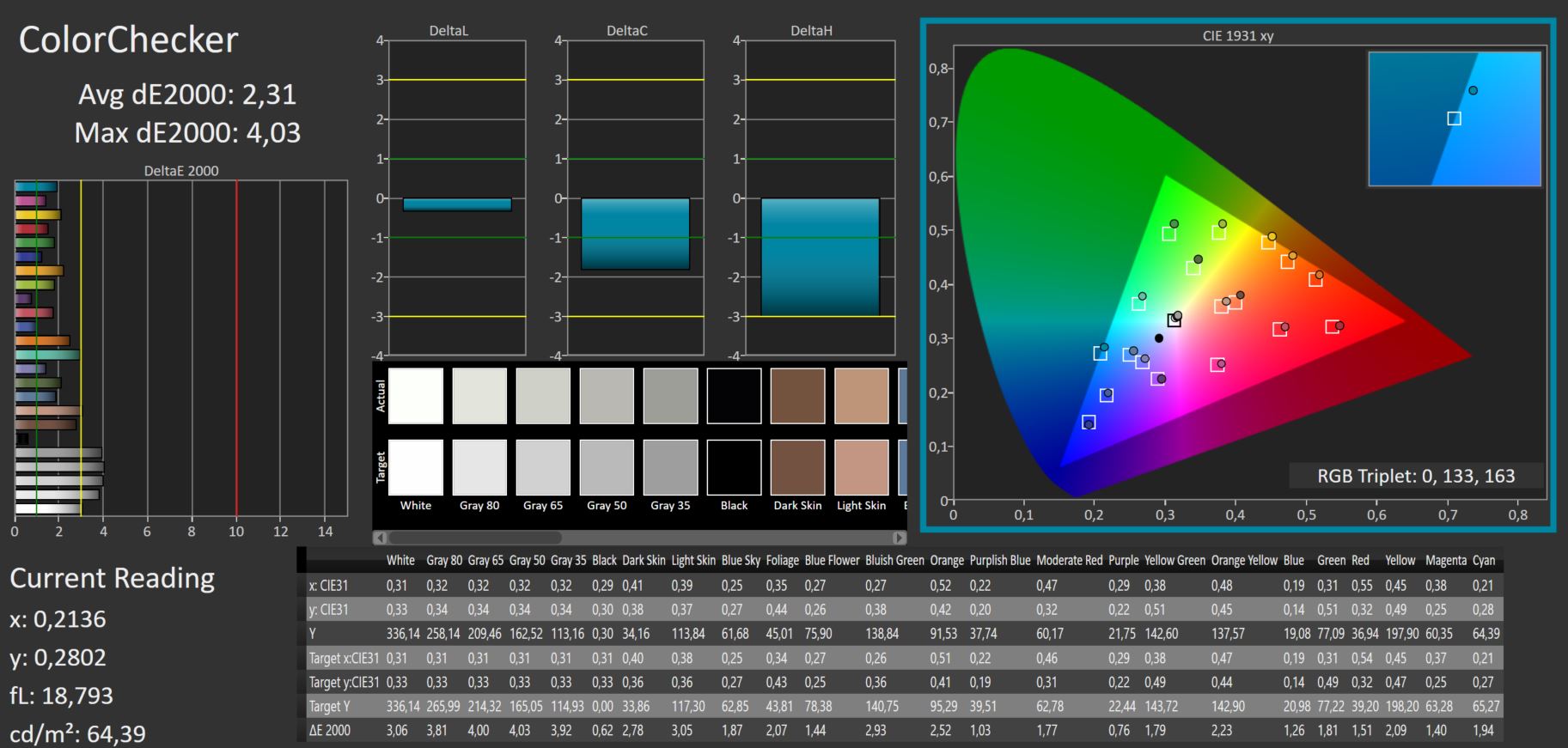 ΔE ColorChecker Calman: 2.31 | ∀{0.5-29.43 Ø4.78}