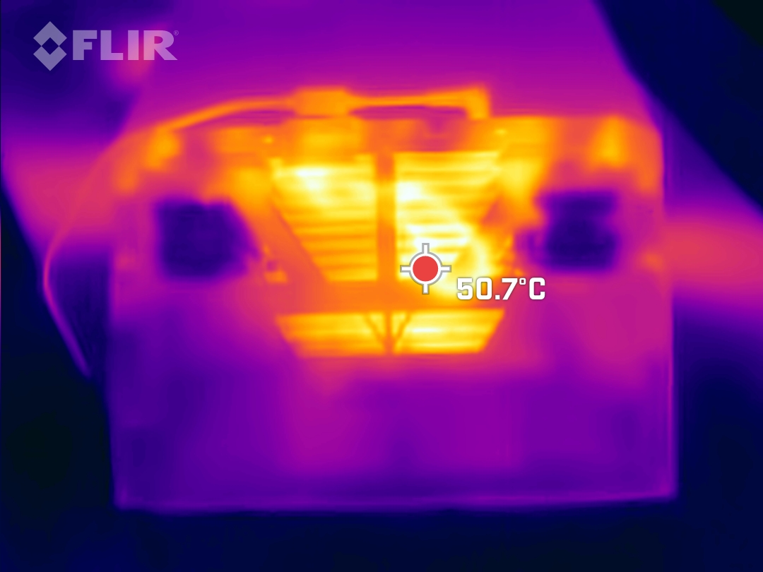 (-) Auf der Unterseite messen wir eine maximalen Wert von 57 °C (im Vergleich zum Durchschnitt von 43.3 °C).