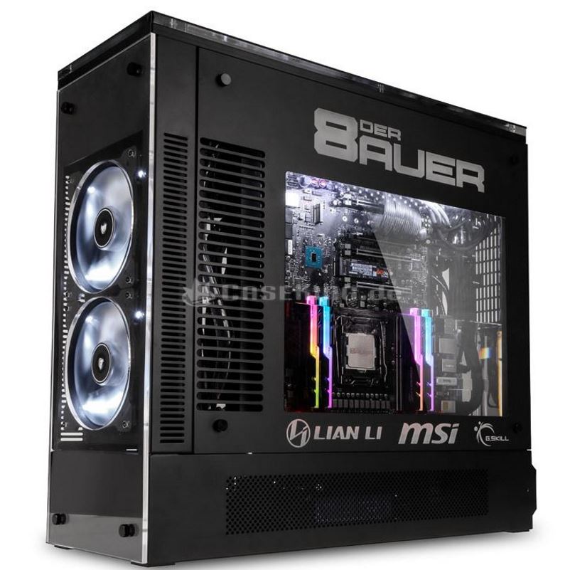 Das nun von Caseking angebotene System ist mit einem i7-7800X-Prozessor, 32 GByte-RAM, einer GTX 1080 und einer Samsung 960 Evo NVMe-SSD ausgestattet, dazu kommt ein massiv angepasstes Lian Li-Gehäuse und ein 850-Watt-Netzteil. Als Preis werden 10.000 Euro aufgerufen.