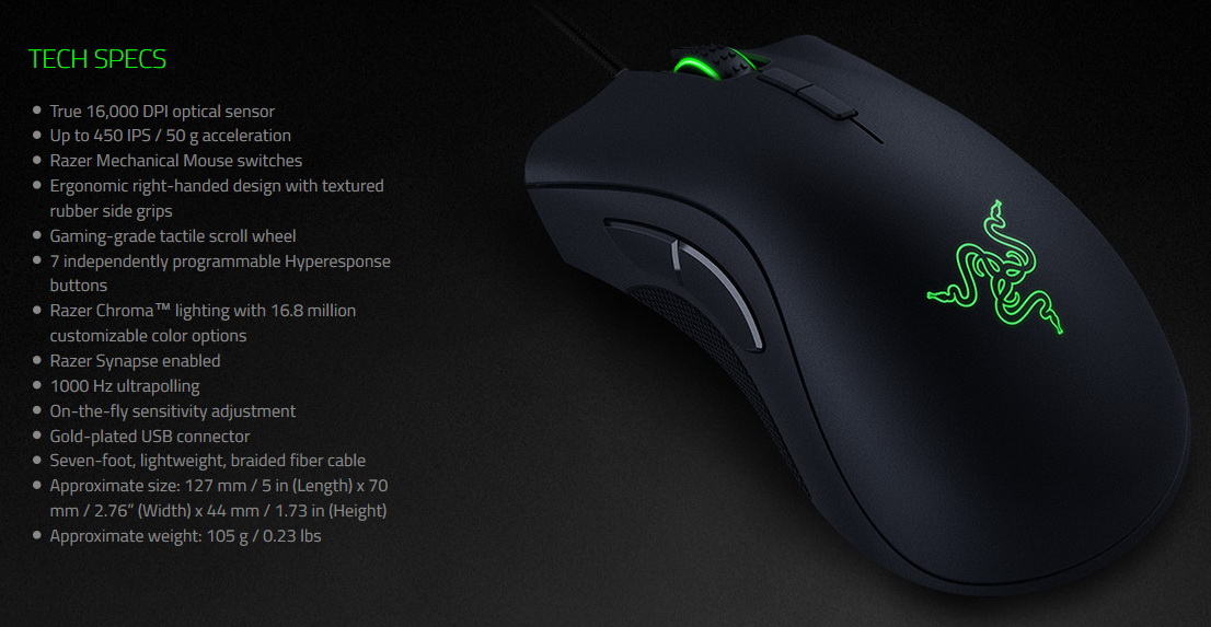 Produkteigenschaften Razer DeathAdder Elite (Herstellerangaben):