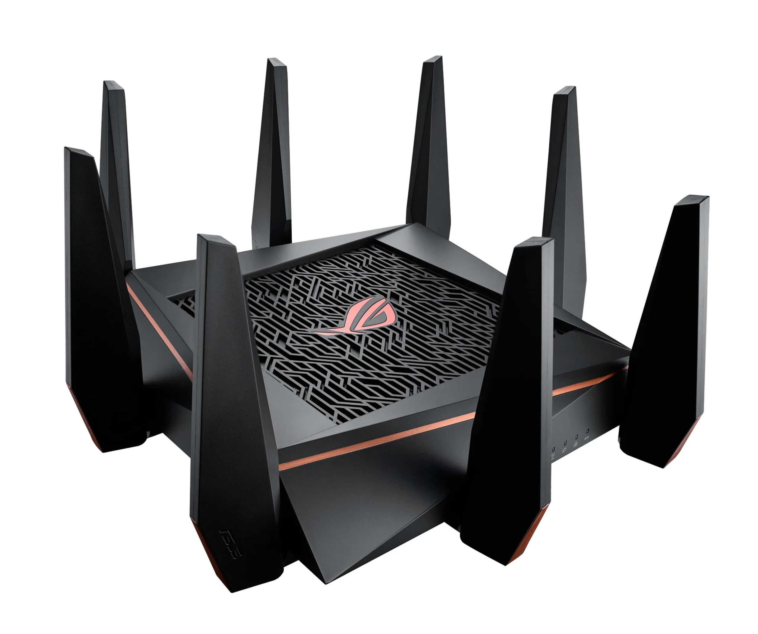 Der GT-AC5300 soll im 2,4- und 5-GHz Netzwerk eine Datenübertragungsrate von bis zu 5.334 MBit/s erreichen, wovon 1.000 MBit/s im 2,4-GHz-Band bereit stehen. Eines der beiden 5-GHz-Bänder lässt sich speziell für Gaming-Geräte reservieren, was eine durchgehend hohe Performance erlauben soll.