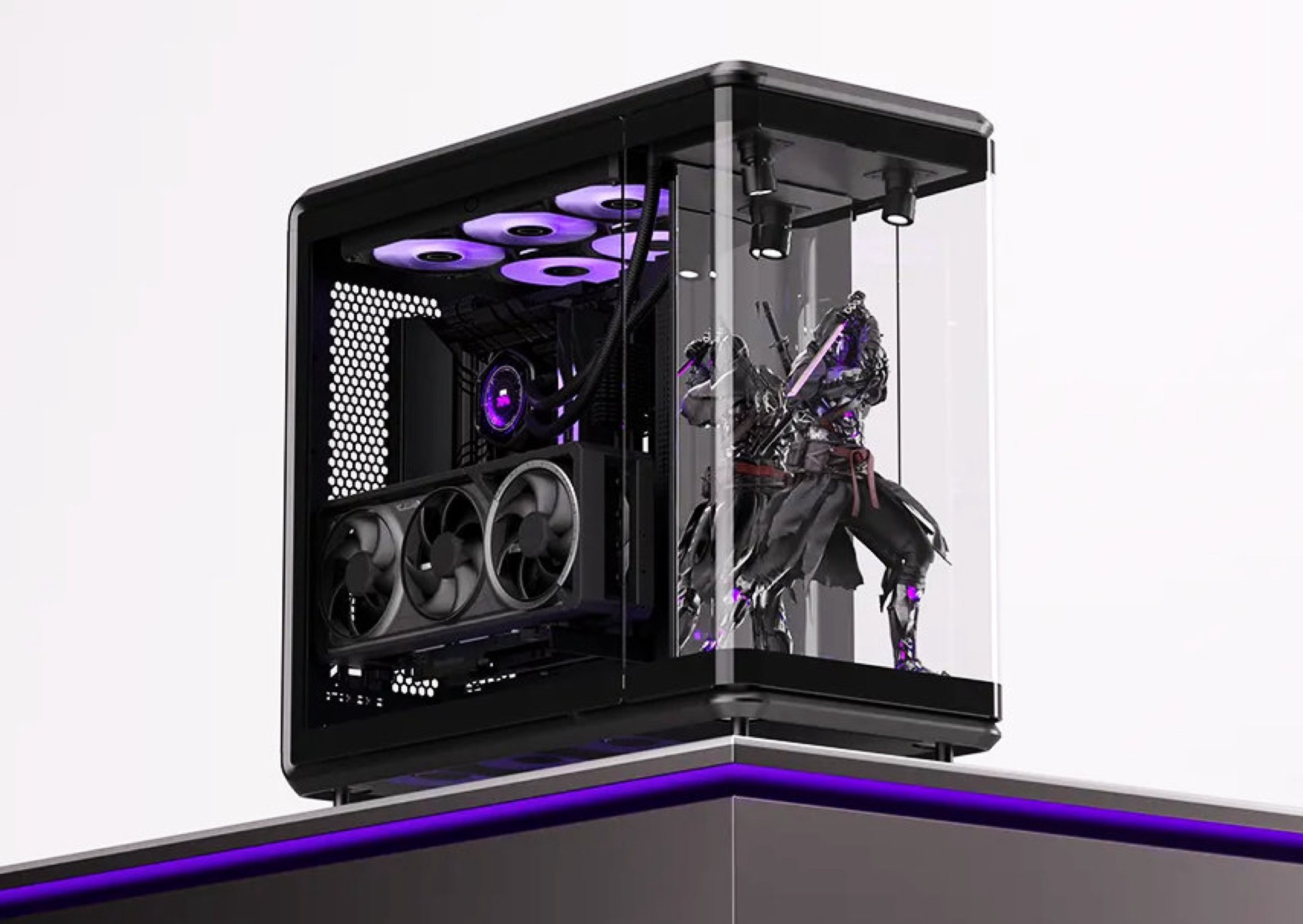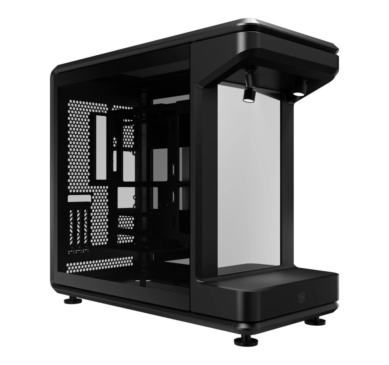 Konkret kommt ein 15,6 Zoll Display zum Einsatz, das eine Auflösung von 1.920 x 1.080 Pixel erreicht. So können Nutzer einen Hintergrund wählen, der zur ausgestellten Figur passt. Das Gehäuse misst 55 x 58 x 29 Zentimeter bei einem Gewicht von 16,5 Kilogramm. Um zu kompensieren, dass keine Lüfter an der Vorderseite montiert werden können, sieht Cooler Master jeweils sechs 120 Millimeter Lüfter oben und unten am Gehäuse vor, allerdings werden keine Lüfter mitgeliefert. Das Gehäuse bietet Platz für bis zu 43 Zentimeter lange Grafikkarten, sodass selbst die größten Versionen der GeForce RTX 5090 Platz finden sollten. Details dazu, wann das Gehäuse in Deutschland verfügbar sein wird, sind noch nicht bekannt.