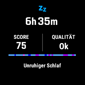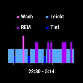 Nachts zeichnet Enduro die Sauerstoffsättigung sowie die Herz- und Atemfrequenz auf, erfasst die Bewegungen und die Schlafphasen. Die Uhr gibt Aufschluss über Schlafdauer und die einzelnen Schlafphasen und bewertet die Schlafqualität. In den Diagrammen der App kann man die Parameter paarweise überlagern.