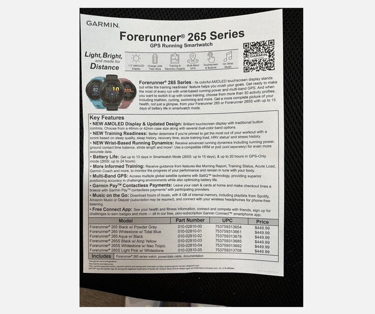 Beide Modelle werden in den USA für einen Listenpreis von 449,99 US-Dollar angeboten – das passt zu einem früheren Leak. Hierzulande soll die Smartwatch für eine unverbindliche Preisempfehlung von 499,99 Euro auf den Markt kommen, womit die Uhr im Vergleich zum Listenpreis der Forerunner 255 (ca. 350 Euro auf Amazon) ganze 150 Euro teurer wird. Immerhin verbaut Garmin nun standardmäßig 8 GB Flash-Speicher, um Musik von Spotify, Amazon Music oder Deezer direkt auf der Uhr zu speichern, beim Vorgängermodell wurde dafür noch ein Aufpreis von 50 Euro fällig.