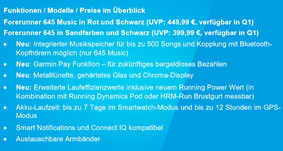 - Forerunner 645 in Sandfarben und Schwarz (UVP: 399,99 €, verfügbar in Q1)