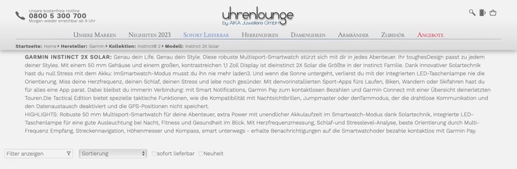 Die Garmin Instinct 2X Solar und die Instinct 2X Tactical waren vor einigen Tagen bereits auf hochauflösenden Renderbildern zu sehen, nun werden die neuen Smartwatches bereits beim Onlineshop Uhrenlounge gelistet, wie der Leaker @fttest_en entdeckt hat.